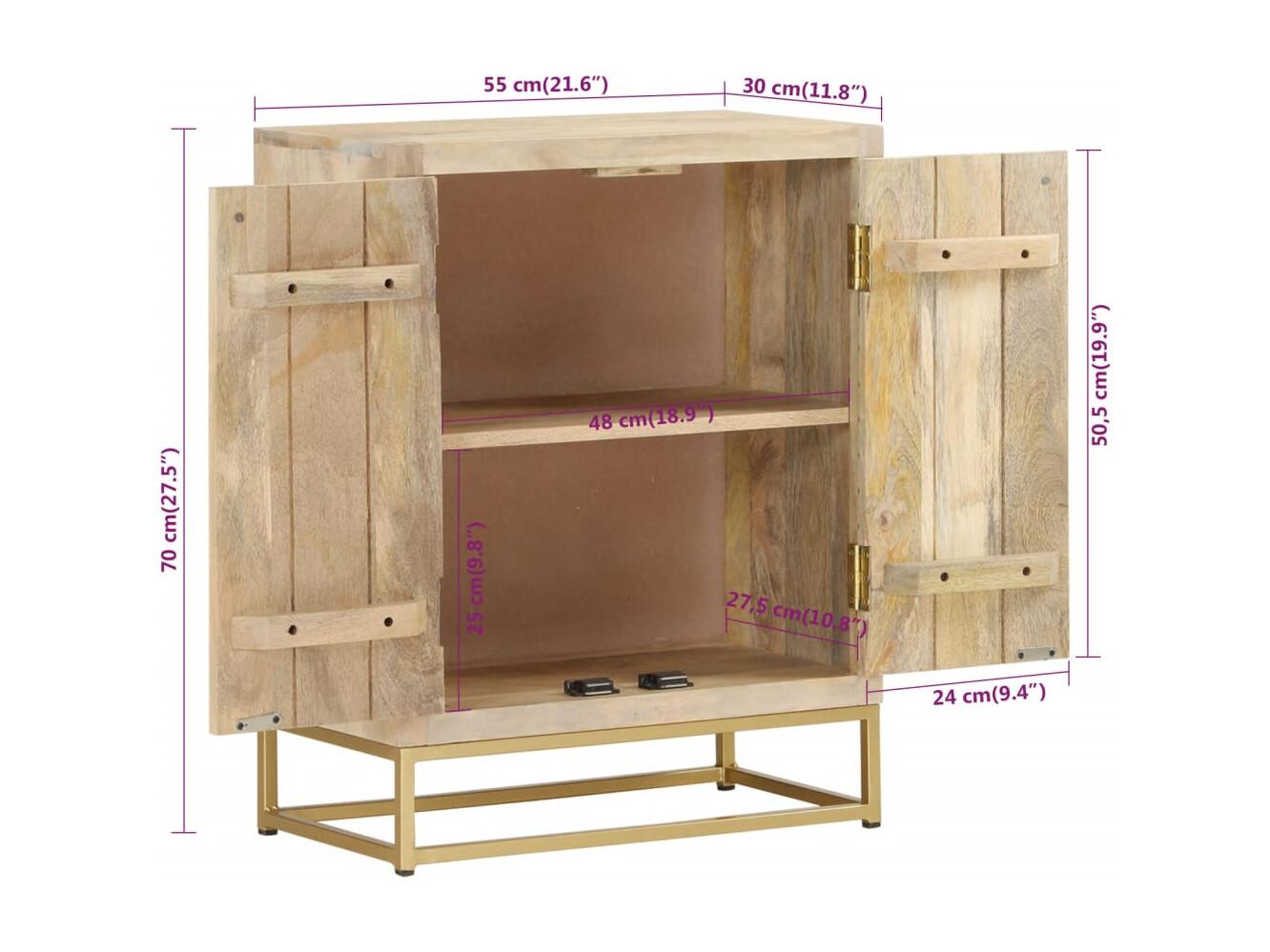 Buffet avec 2 portes 55x30x70 cm bois massif de manguier