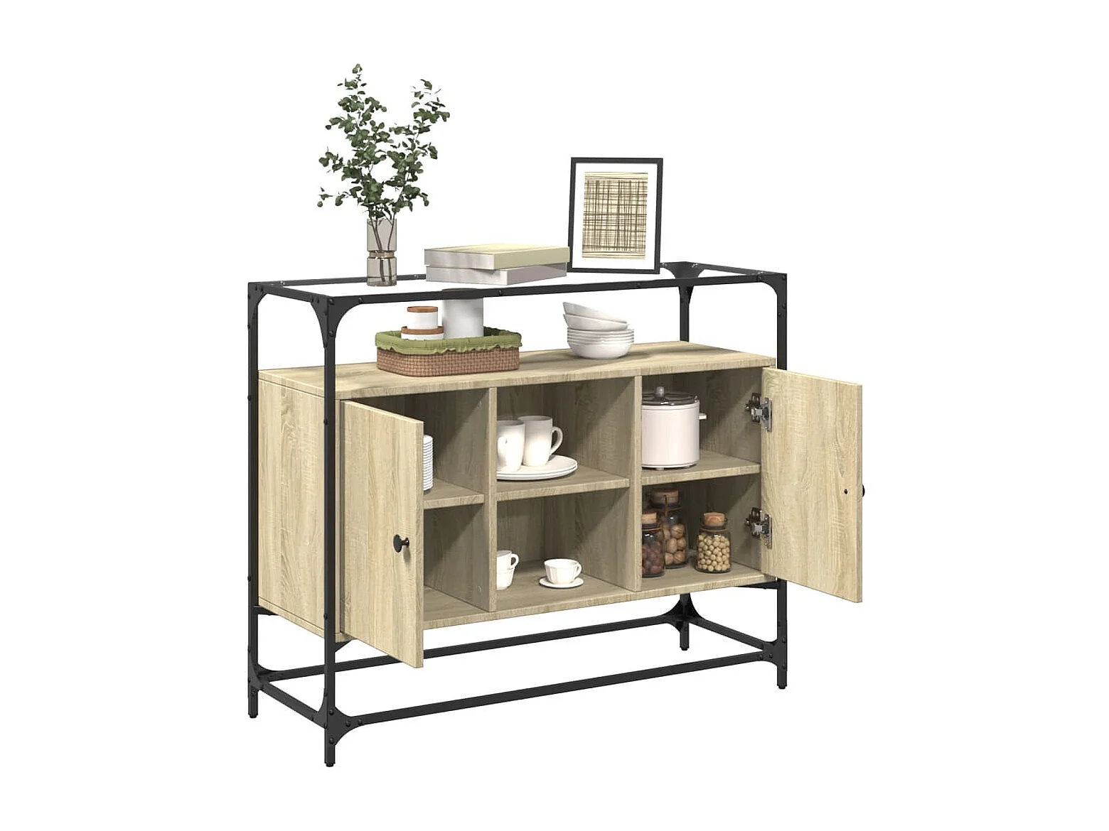 Buffet avec dessus en verre chêne sonoma bois d'ingénierie