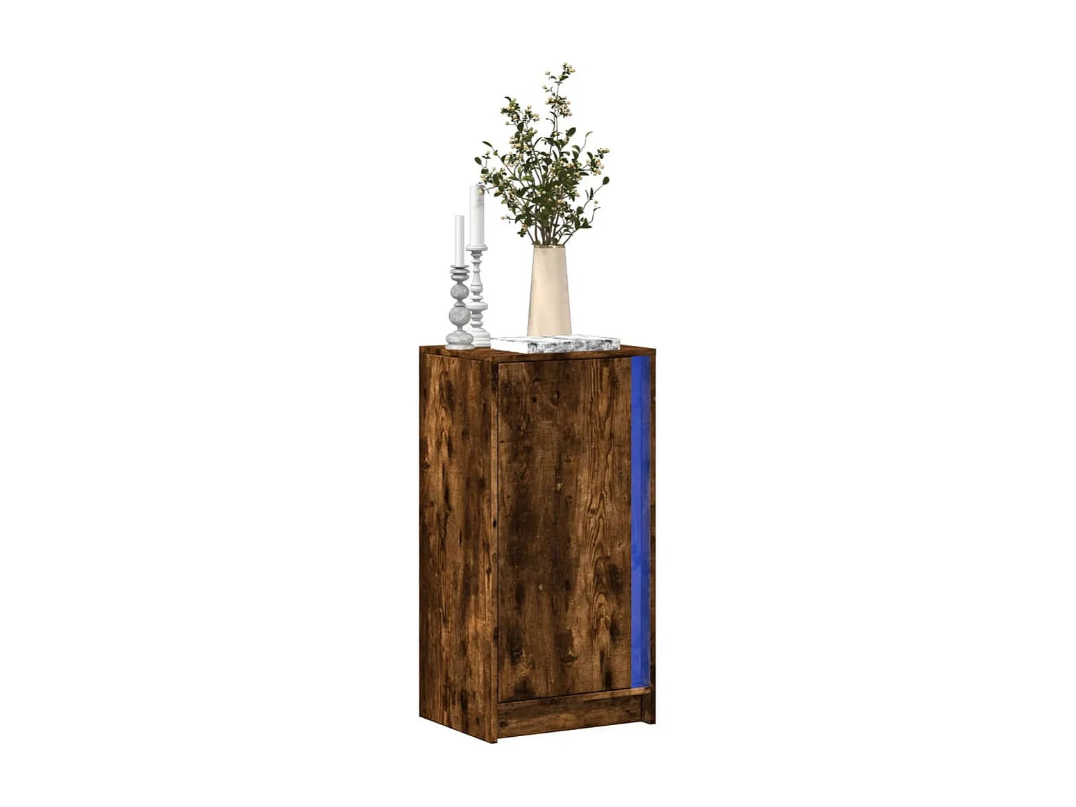 Buffet avec LED chêne fumé 42,5x34x85 cm bois d'ingénierie
