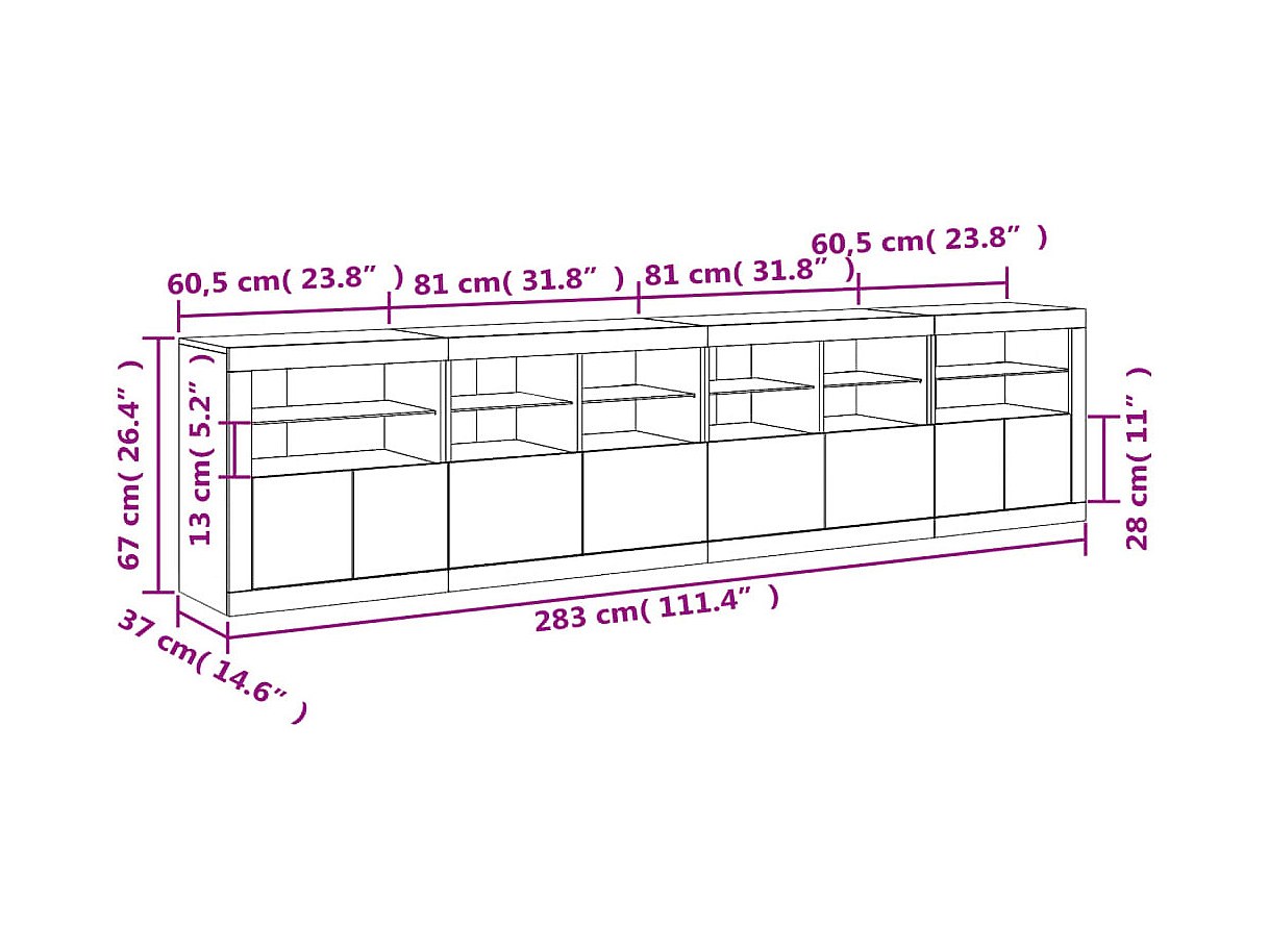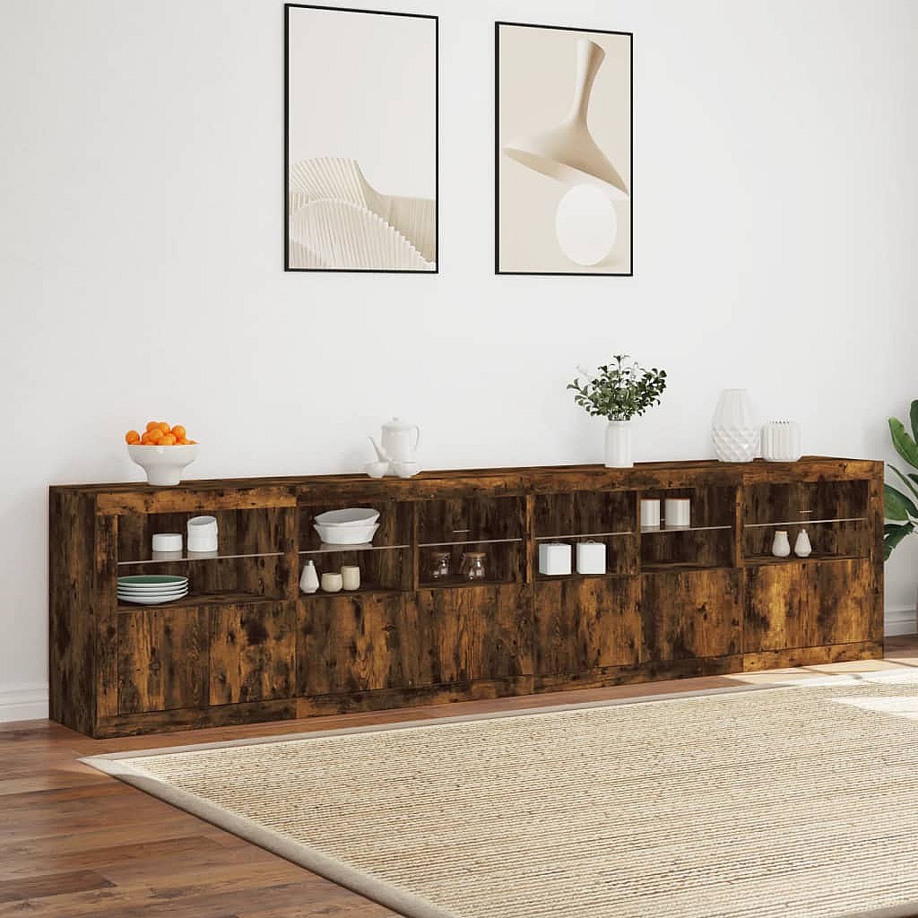 Buffet avec lumières LED chêne fumé 283x37x67 cm