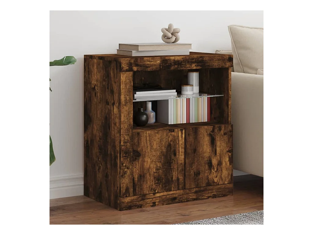Buffet avec lumières LED chêne fumé 60,5x37x67 cm