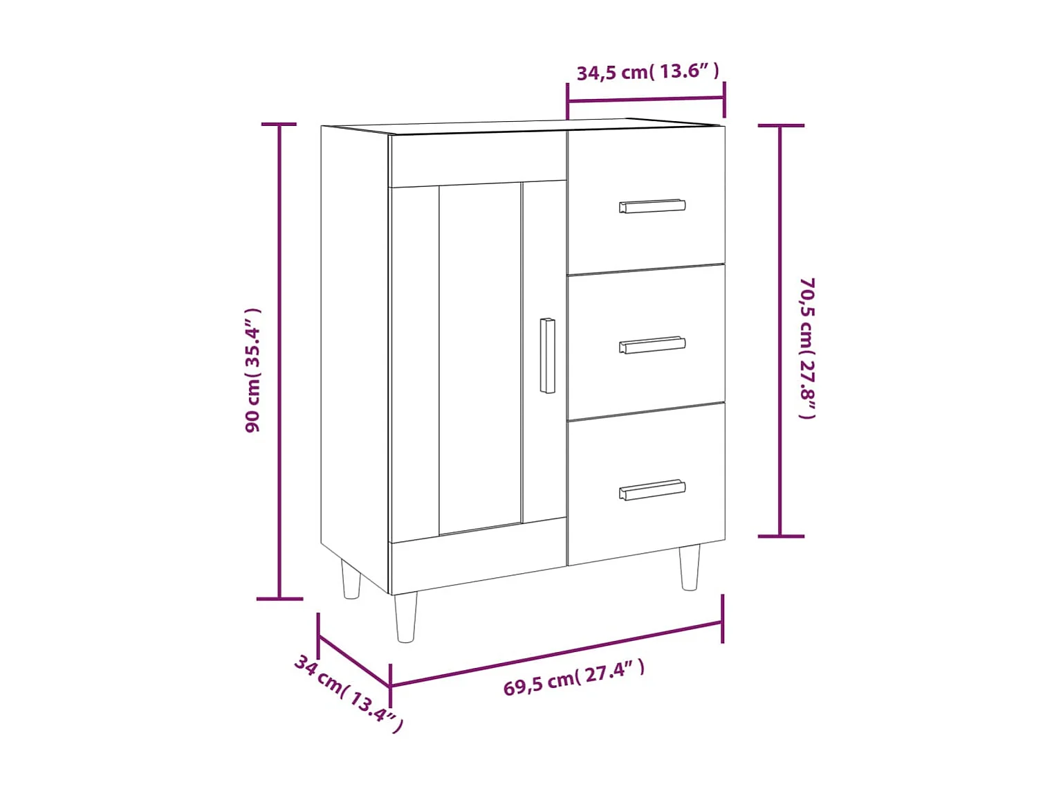 Buffet Blanc brillant 69,5x34x90 cm Bois d'ingénierie