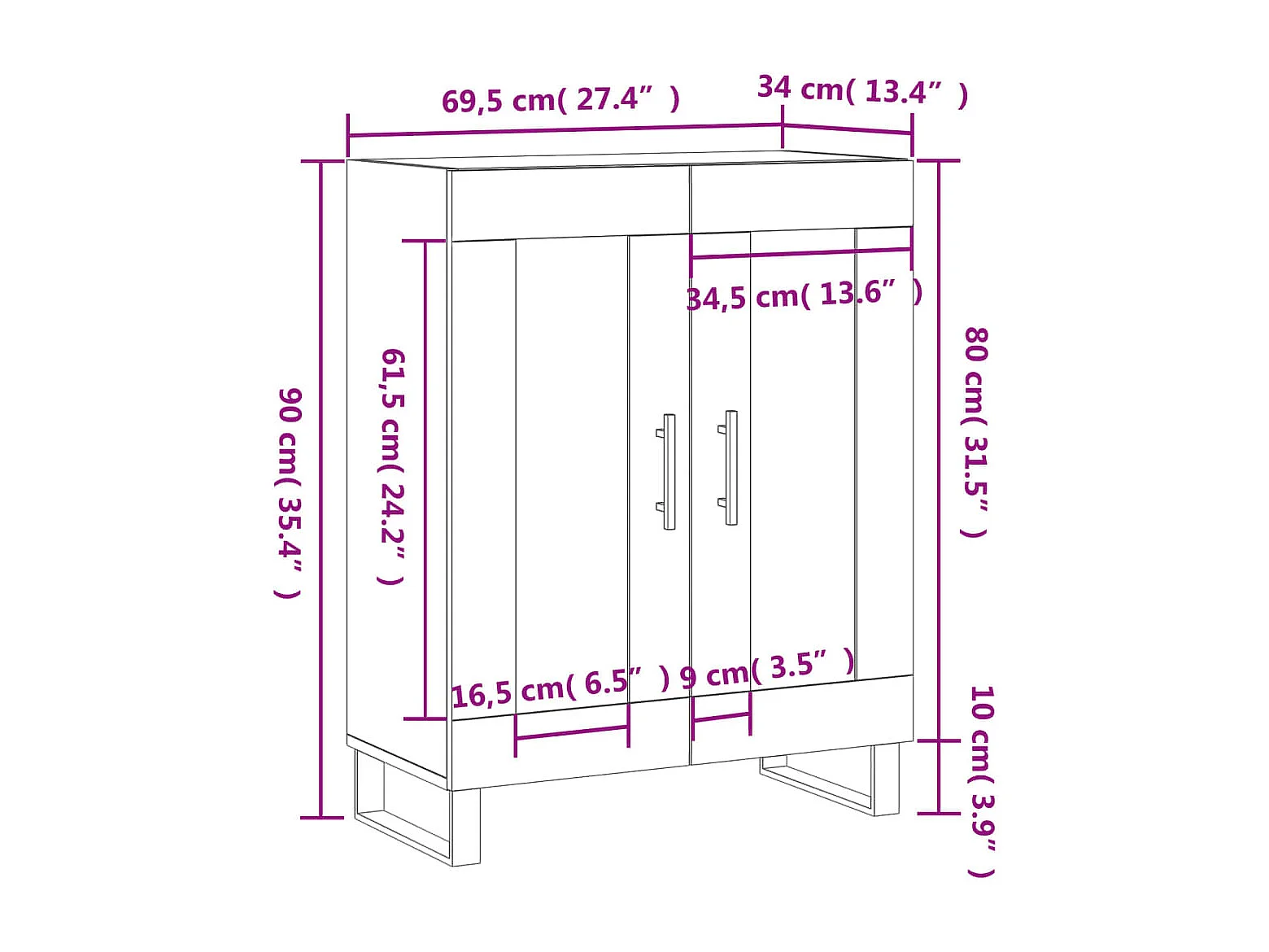 Buffet Blanc brillant 69,5x34x90 cm Bois d'ingénierie