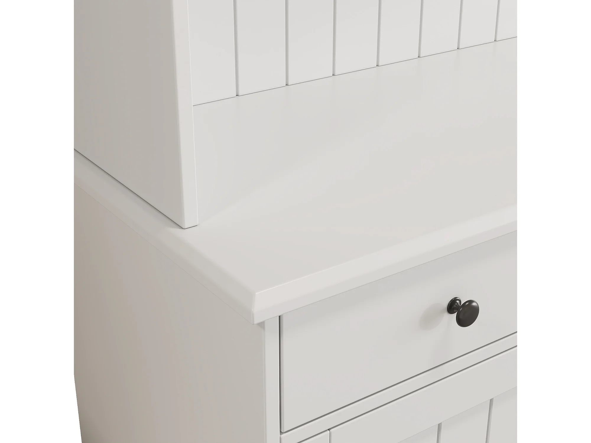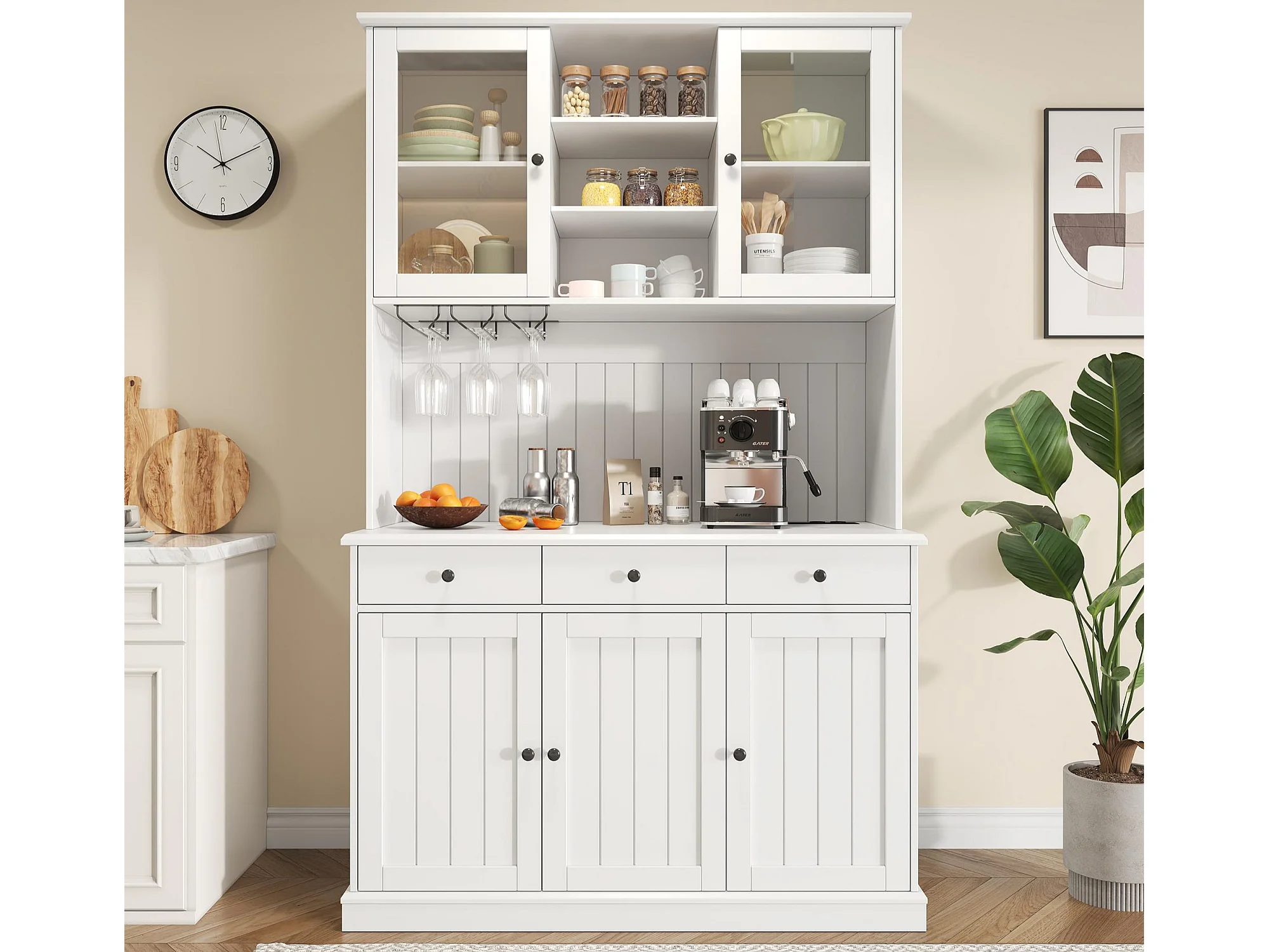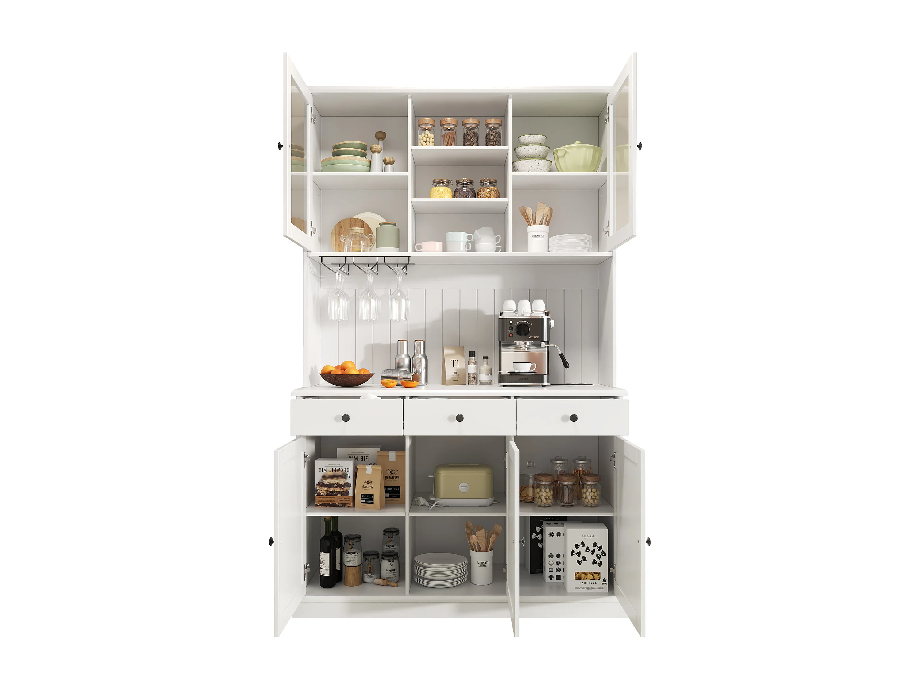 Buffet de cuisine 120x40x191 cm - 5 portes et 3 tiroirs - avec prise électrique et port USB - Porte-verres à vin - Étagères réglables - Blanc