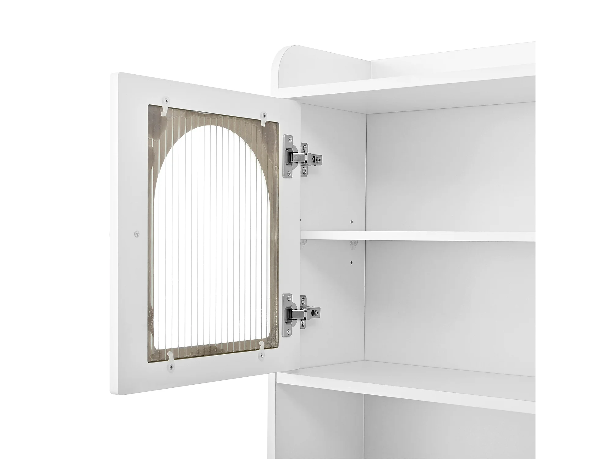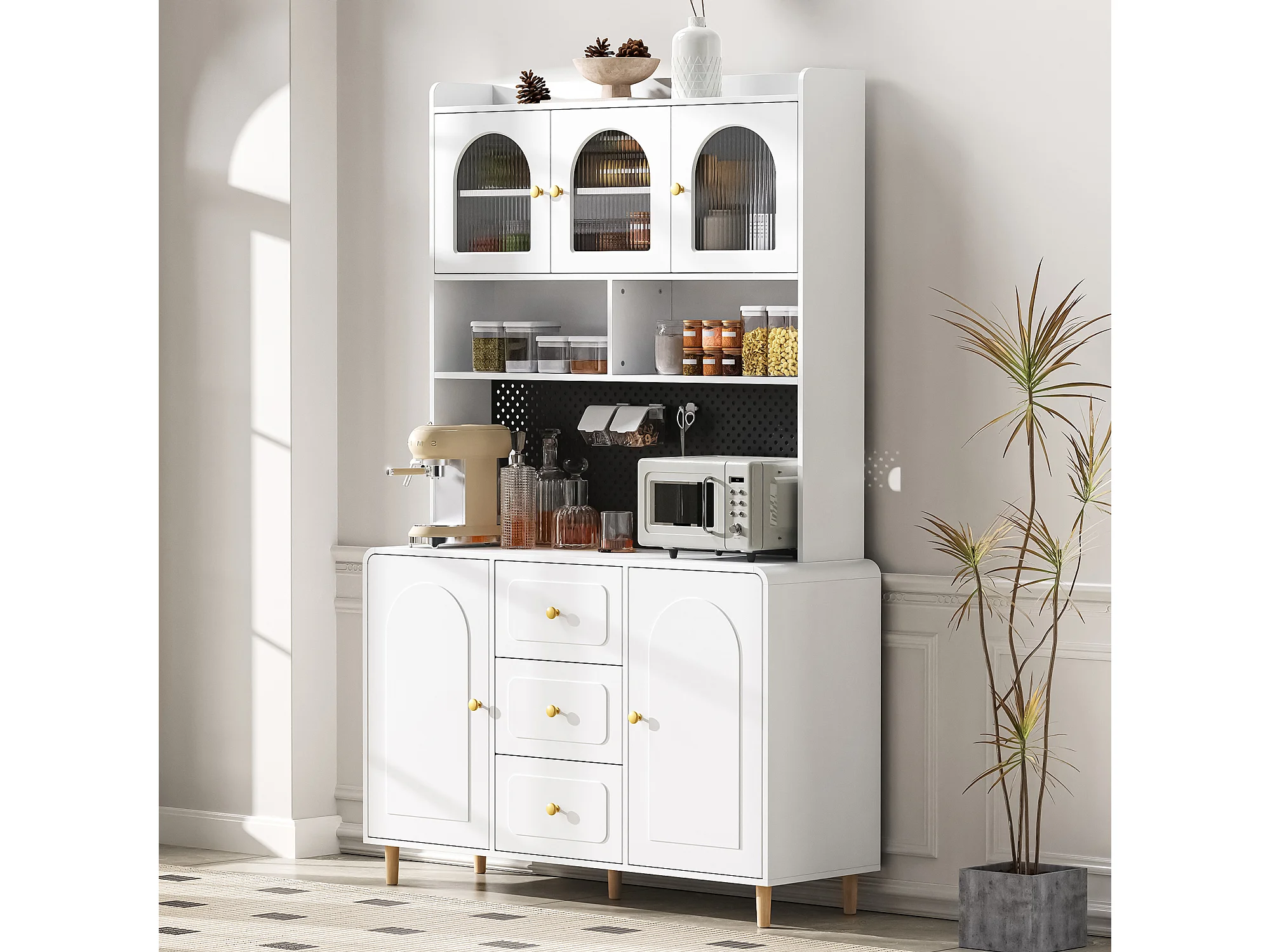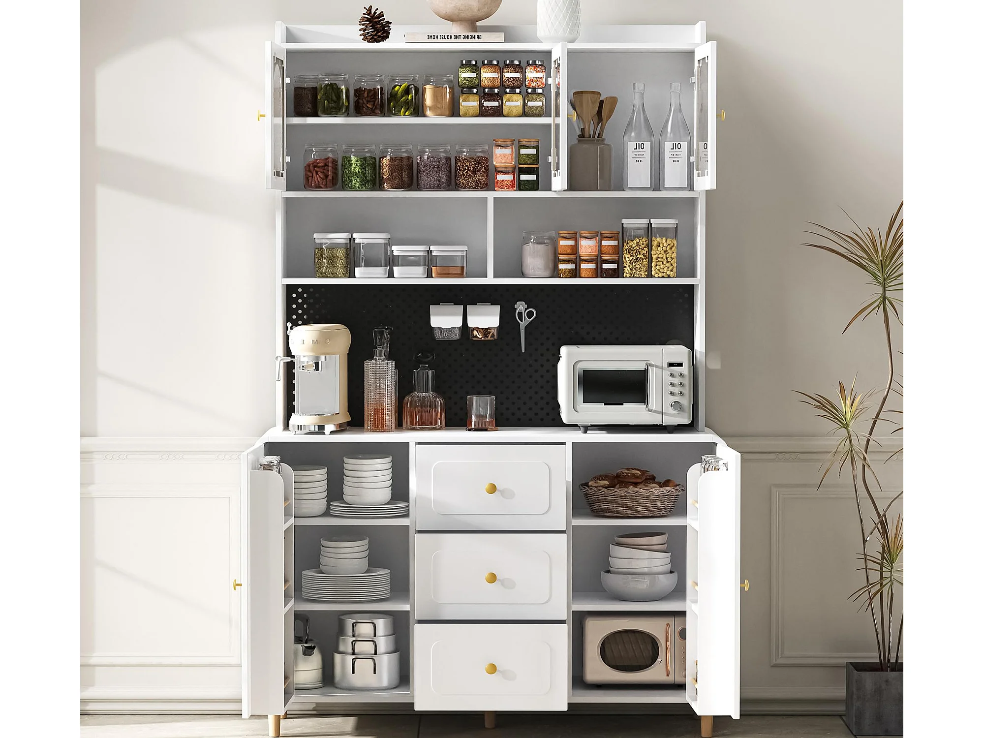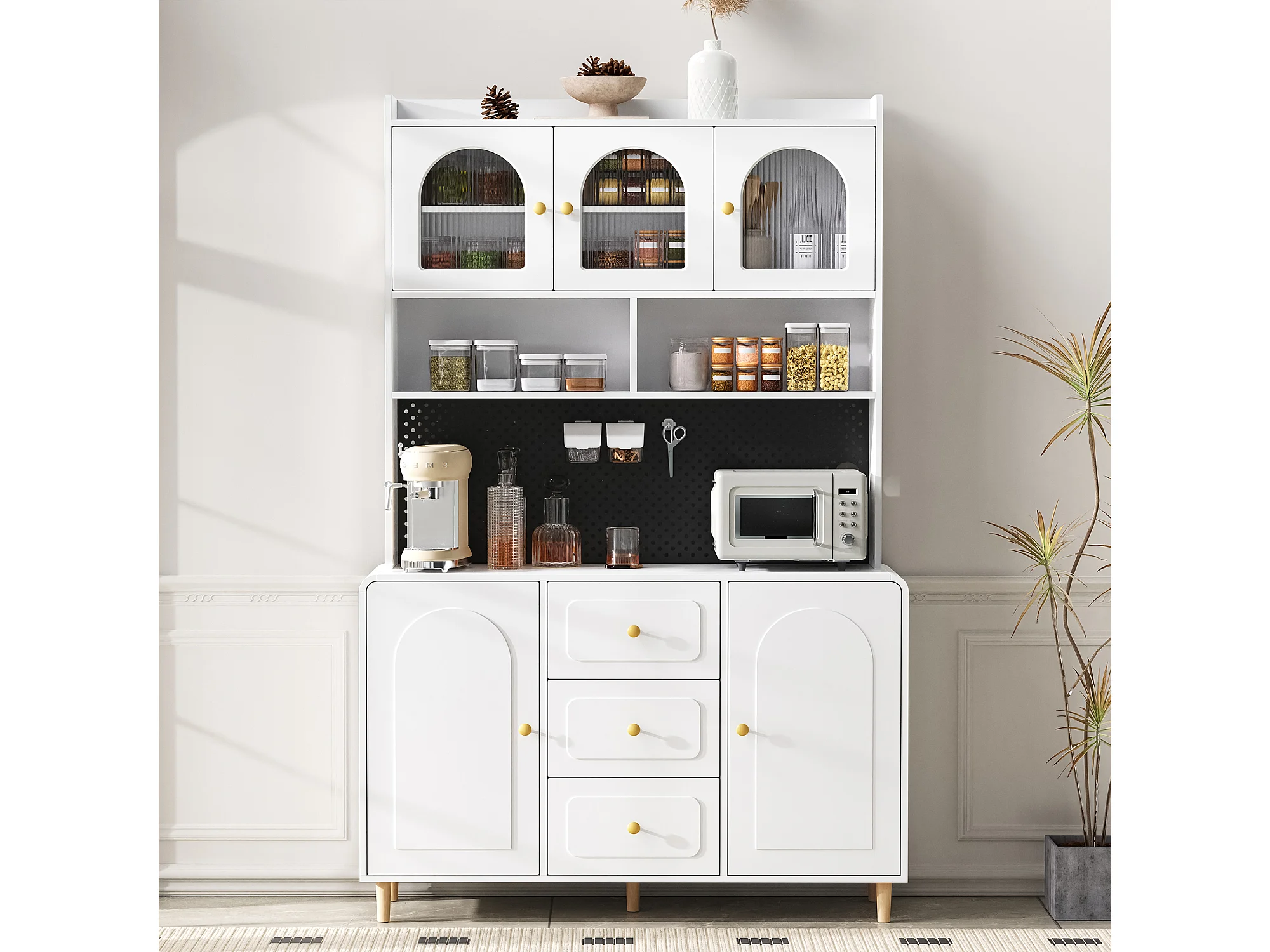 Buffet de cuisine moderne 140x40x190cm - avec des étagères ouvertes - avec 3 tiroirs et 5 portes - Blanc