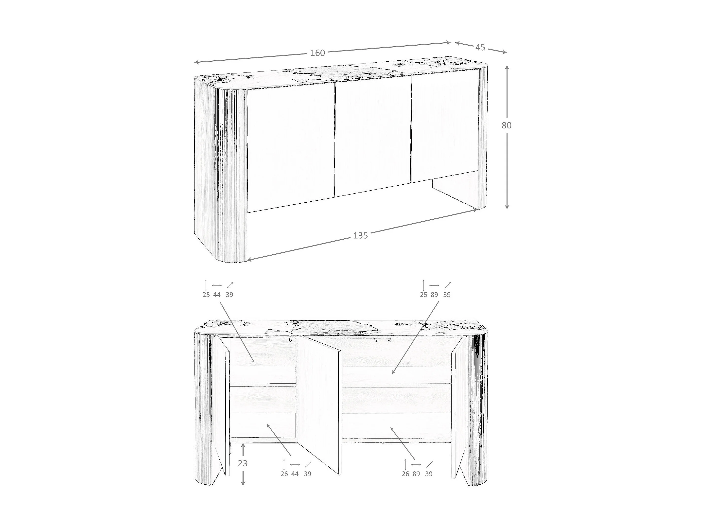 Buffet en bois argenté, noyer et plateau en marbre de porcelaine 3261 ANGEL CERDA