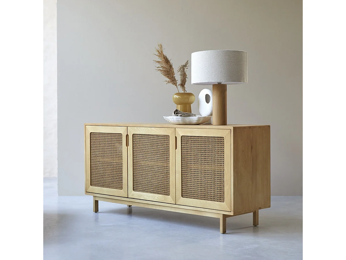 Buffet en bois d'orme massif et cannage Luis 160 cm