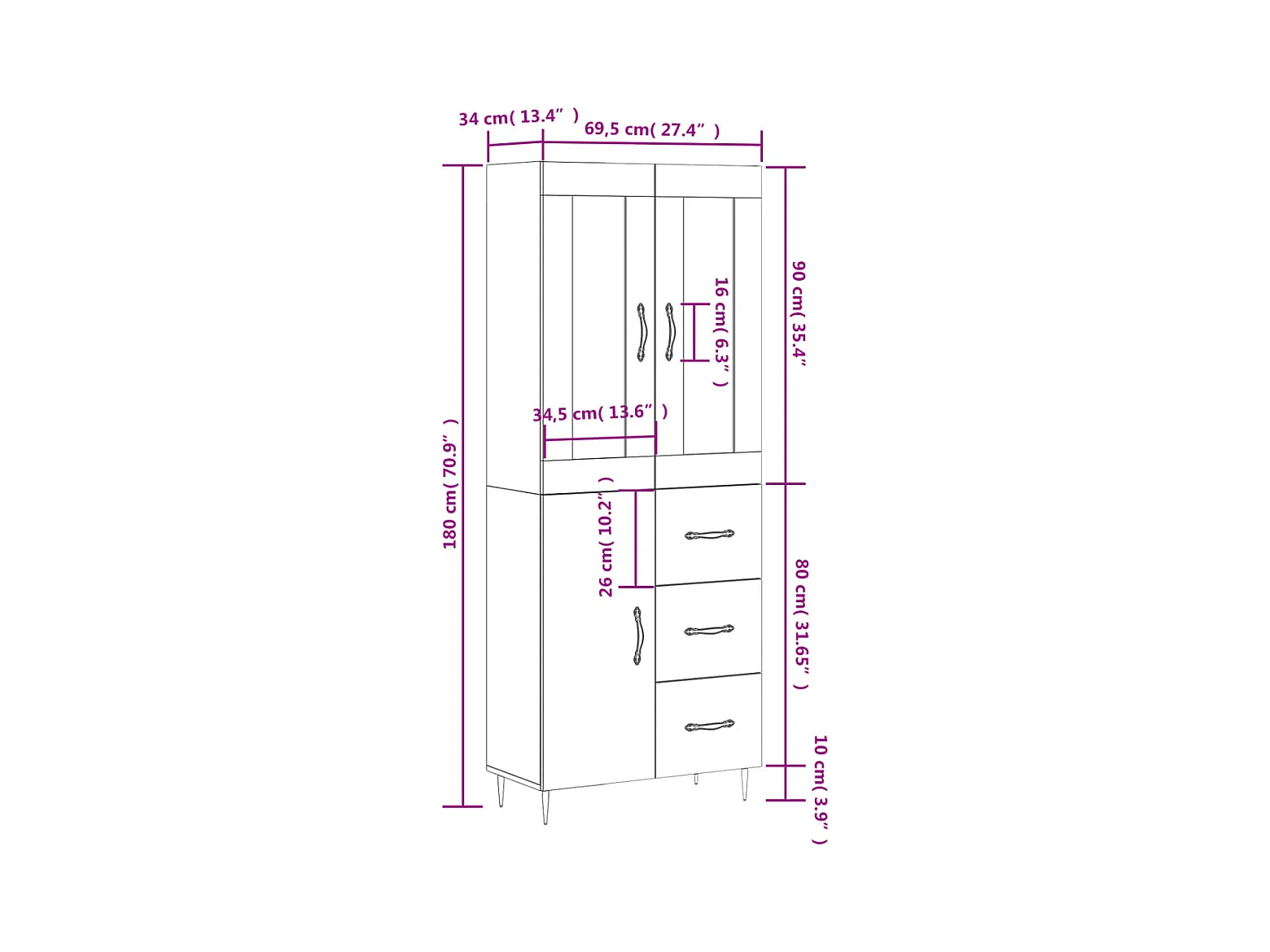 Buffet haut Chêne sonoma 69,5x34x180 cm Bois d'ingénierie