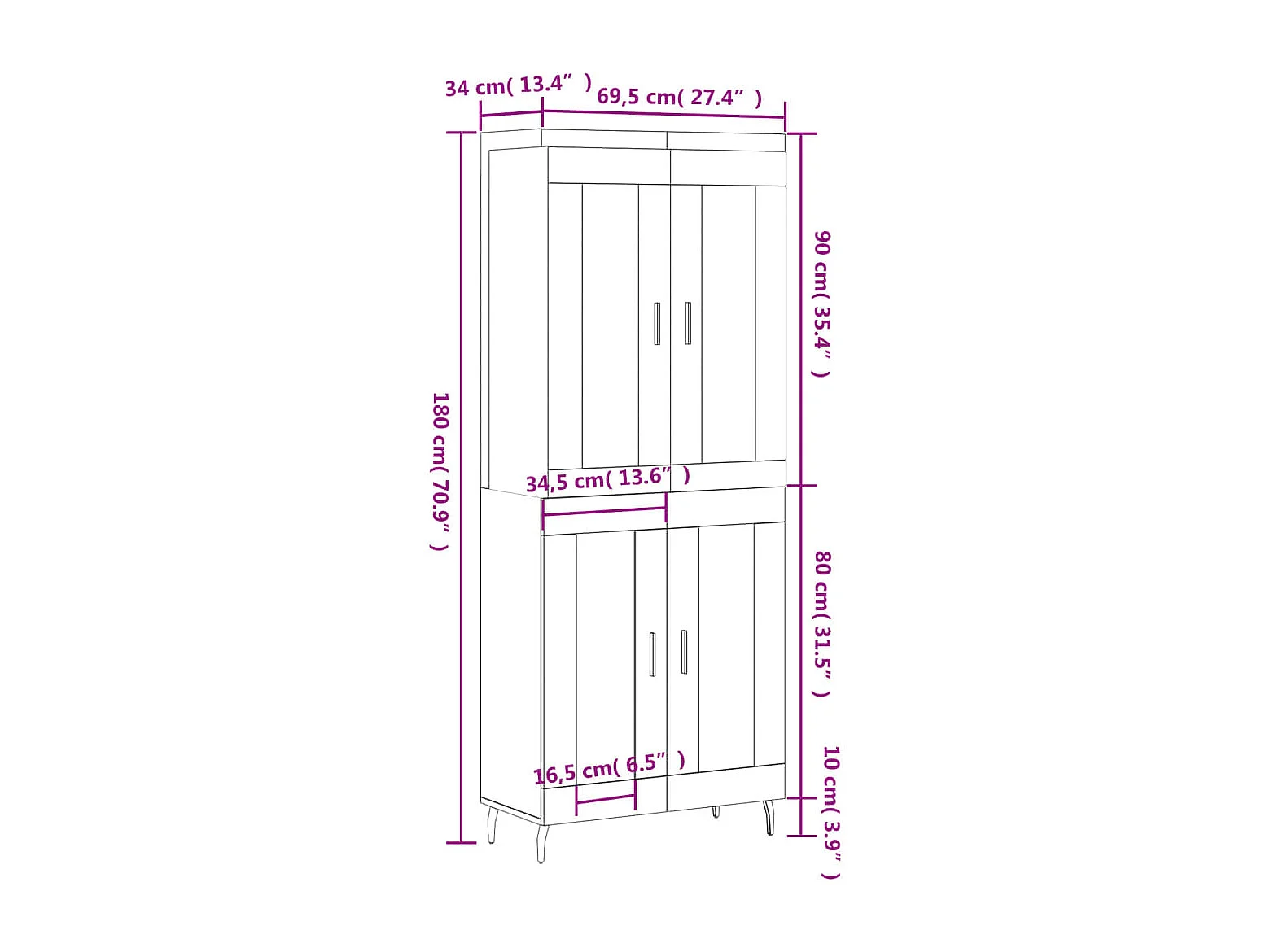 Buffet haut Chêne sonoma 69,5x34x180 cm Bois d'ingénierie