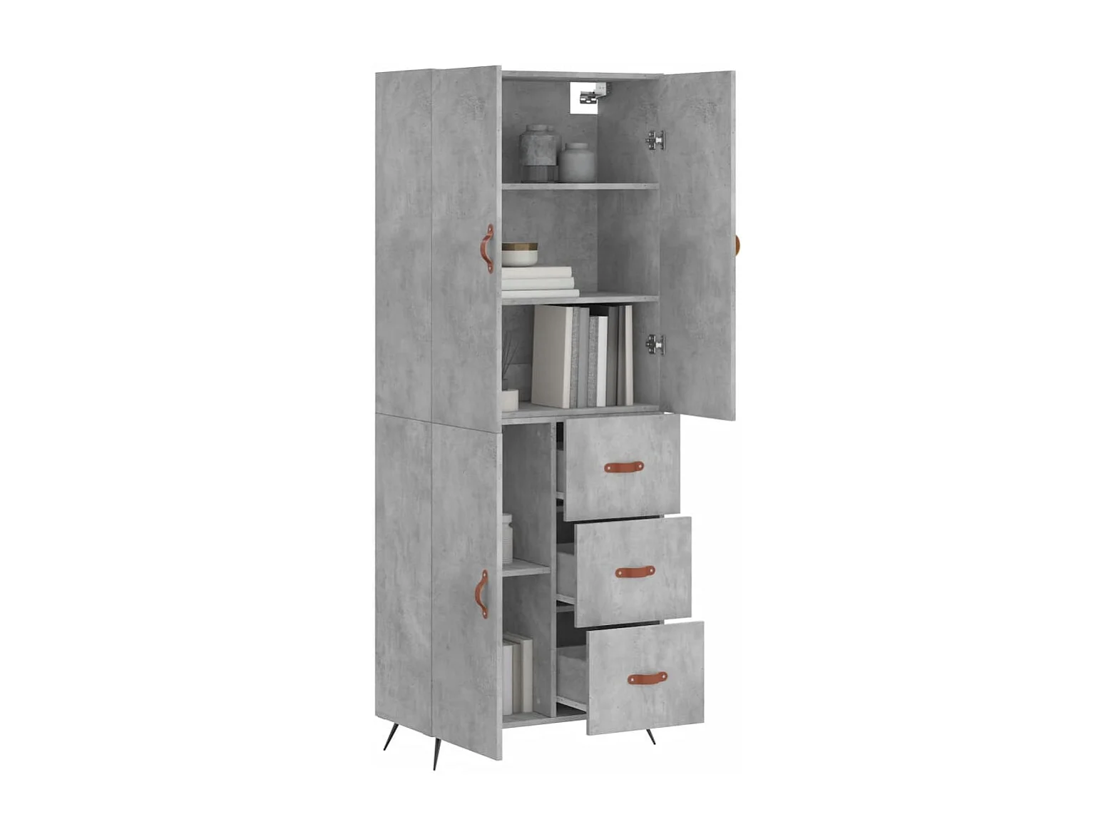 Buffet haut Gris béton 69,5x34x180 cm Bois d'ingénierie