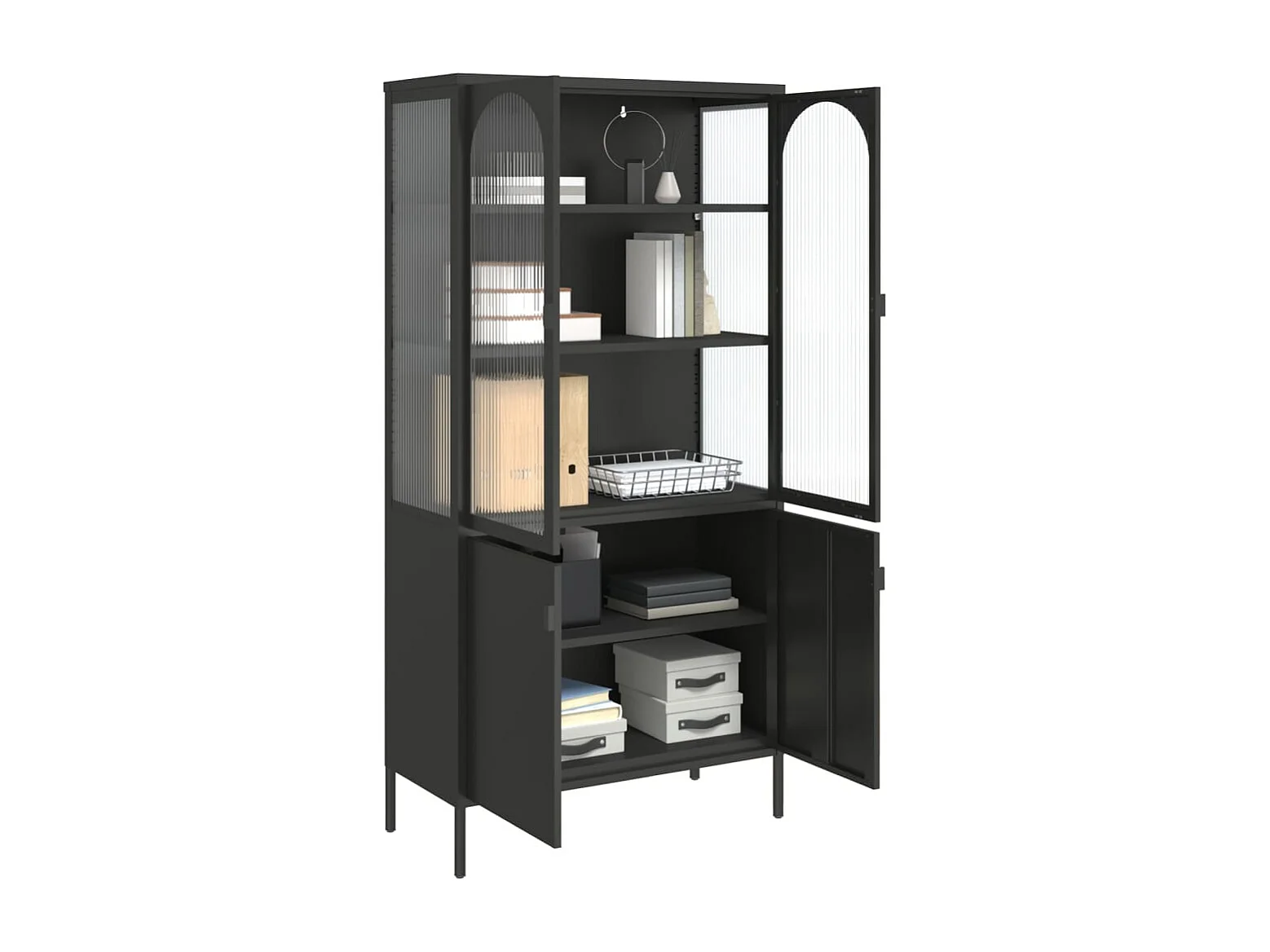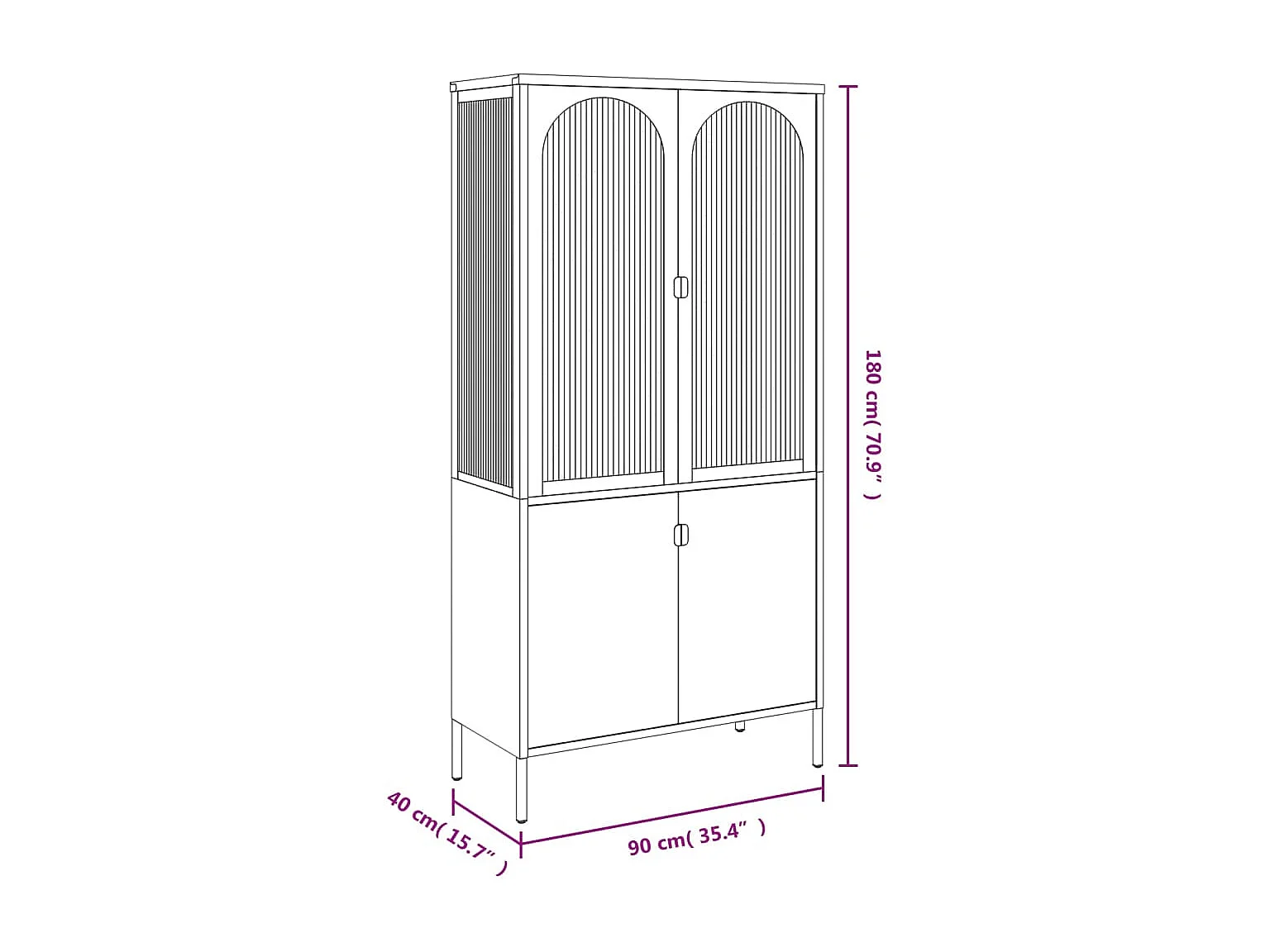 Buffet haut noir 90x40x180 cm verre et acier