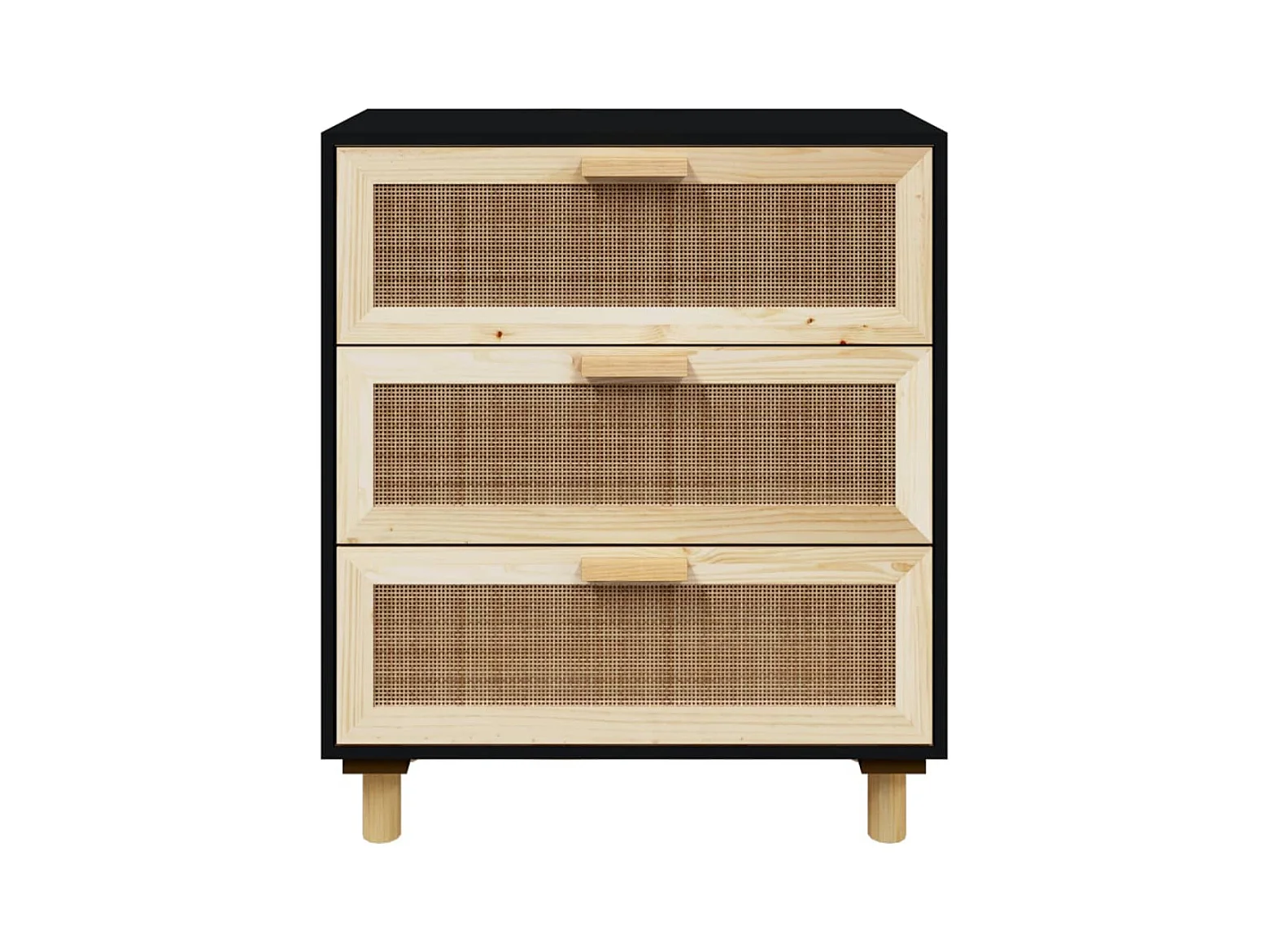 Buffet Noir 60x30x70 cm Bois de pin massif et rotin naturel