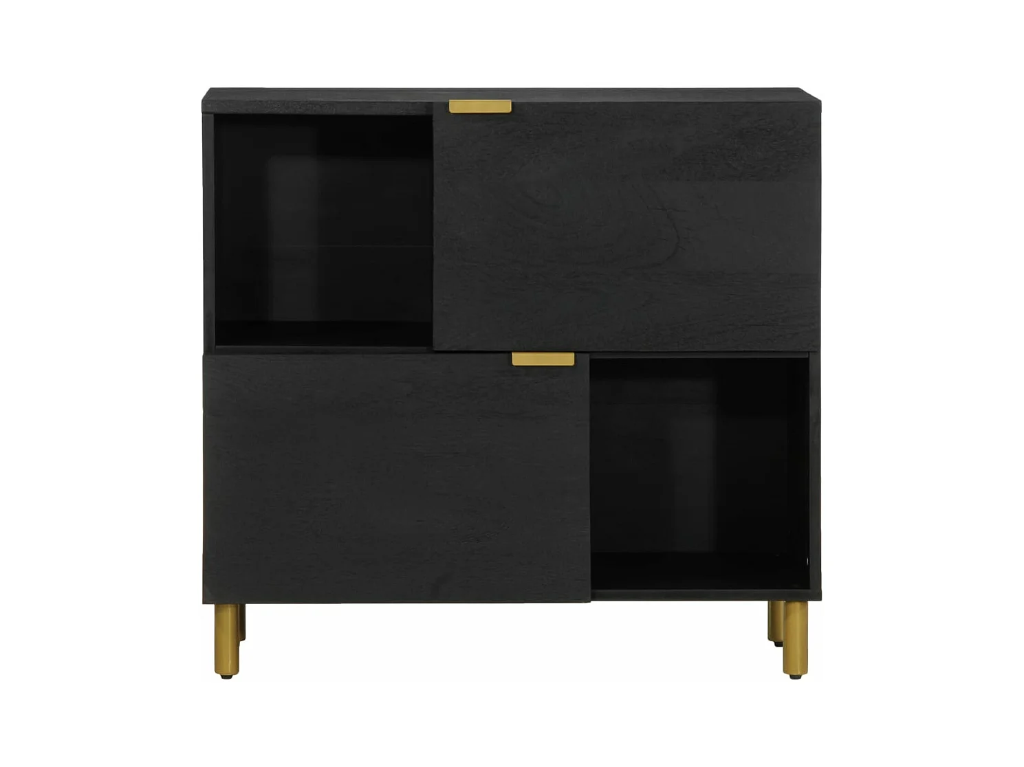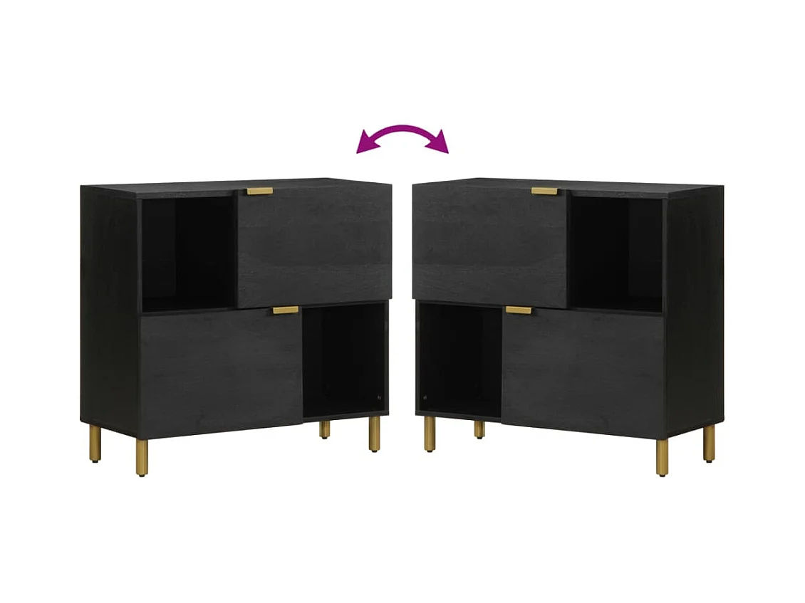 Armoire latérale noir 60x33x75 cm bois massif de manguier
