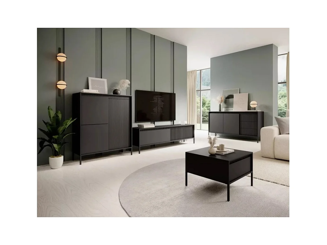 Buffet Senso/portes battantes/tiroirs/MDF/Noir