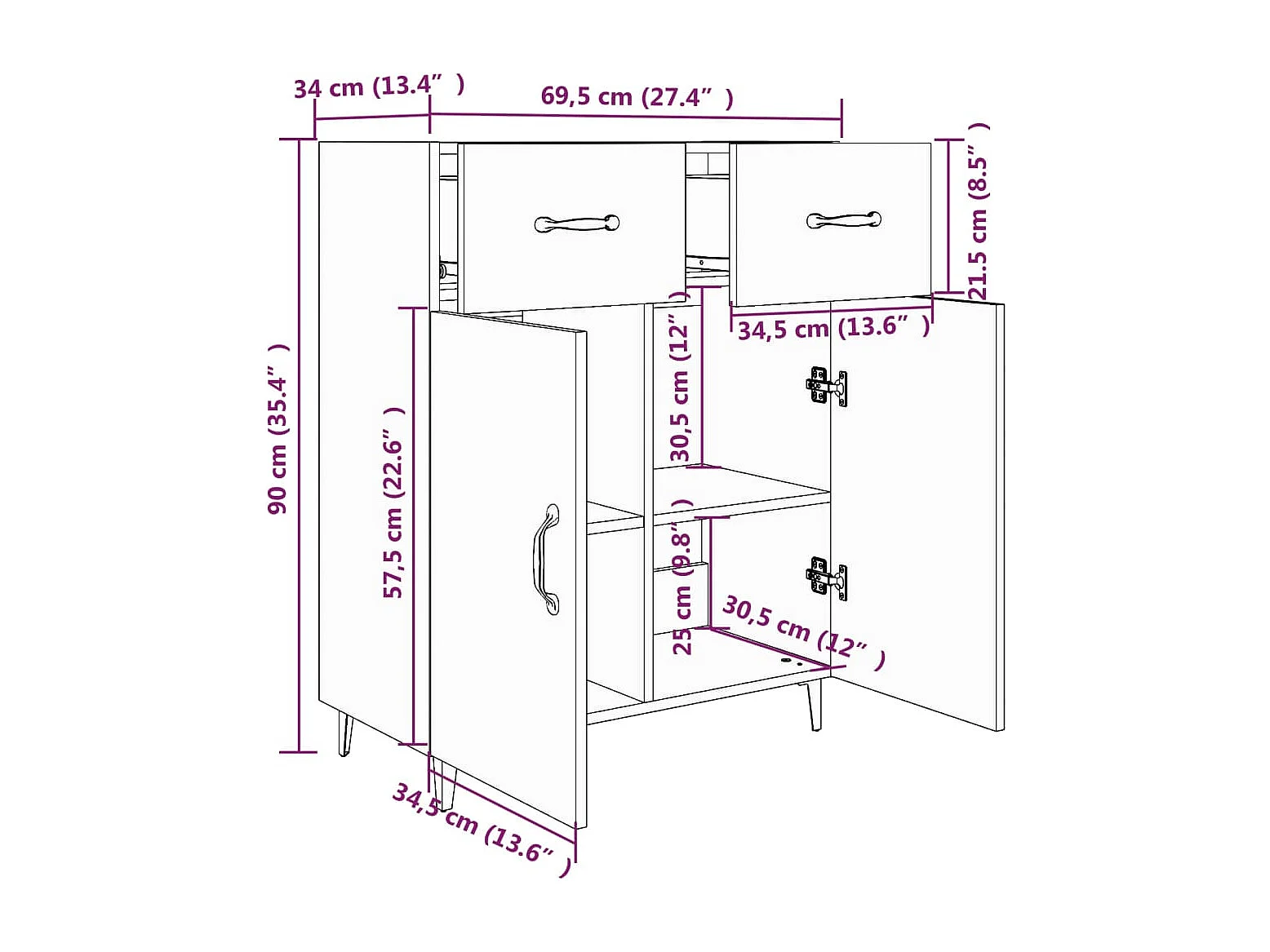 Buffet sonoma gris 69,5x34x90 cm bois d'ingénierie