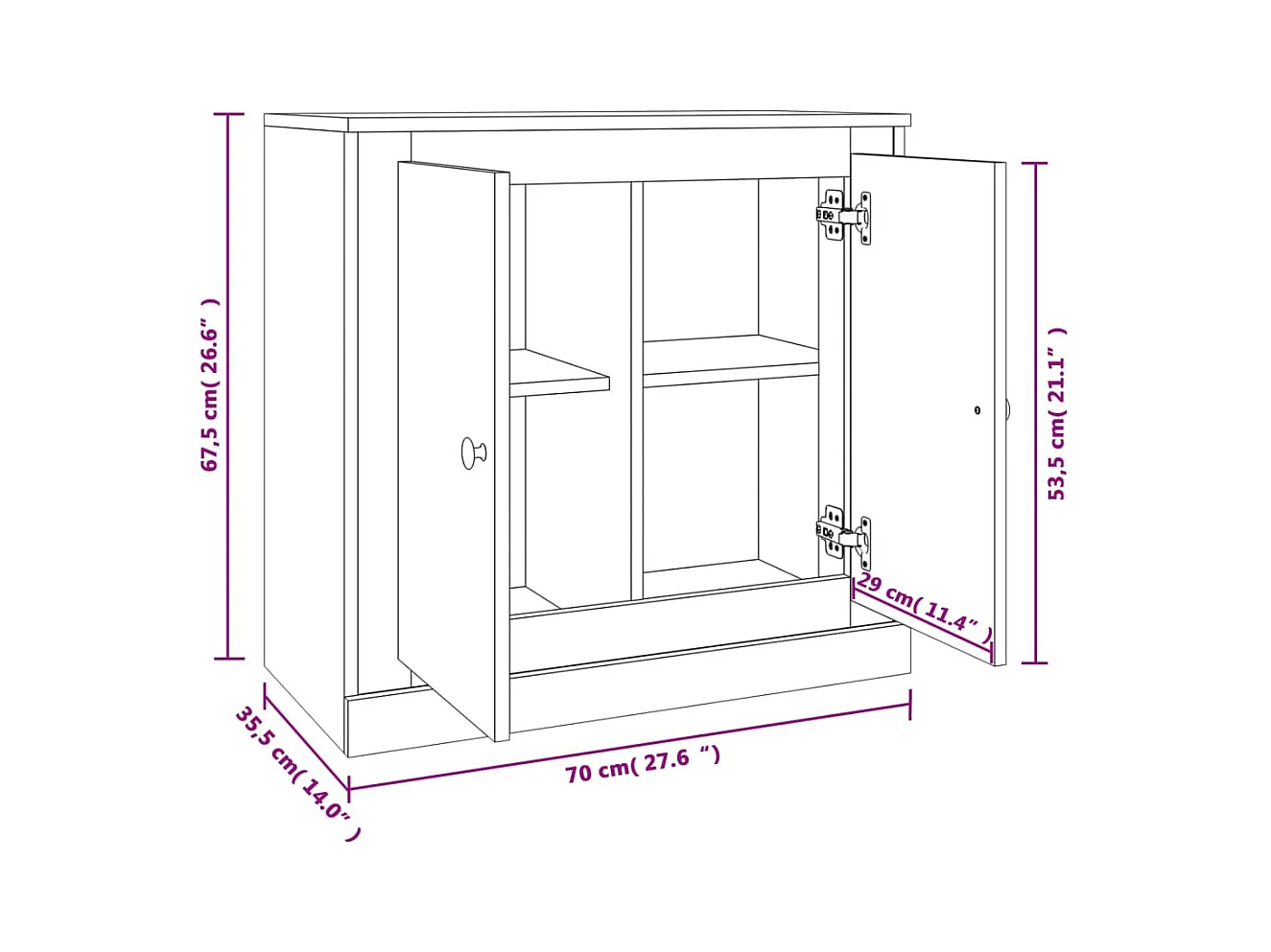 Buffet sonoma gris 70x35,5x67,5 cm bois d'ingénierie