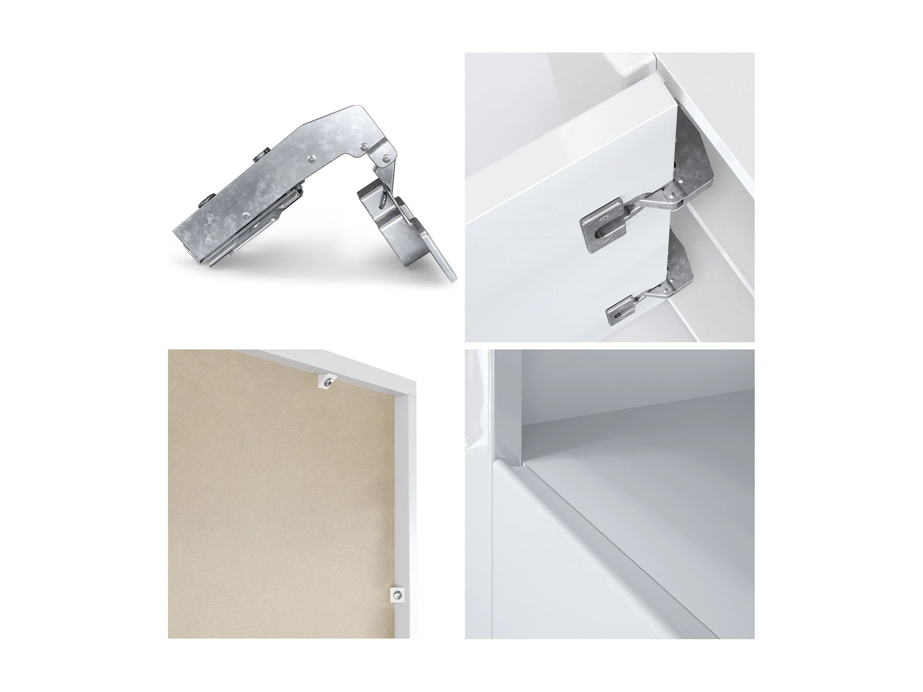 Buffet Armoire Metro, Corps en Blanc haute brillance / Façades en Blanc haute brillance avec une insertion en Chêne Nature