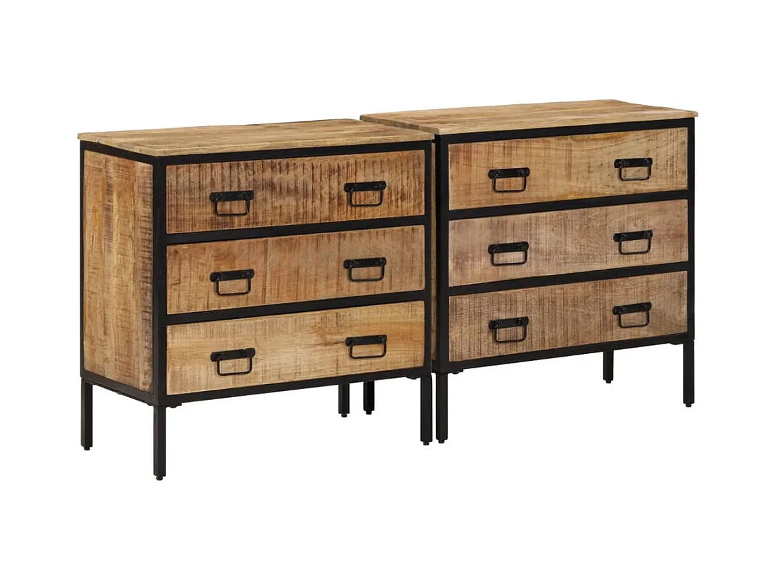 Buffets 2 pcs 70x35x70 cm bois de manguier brut massif