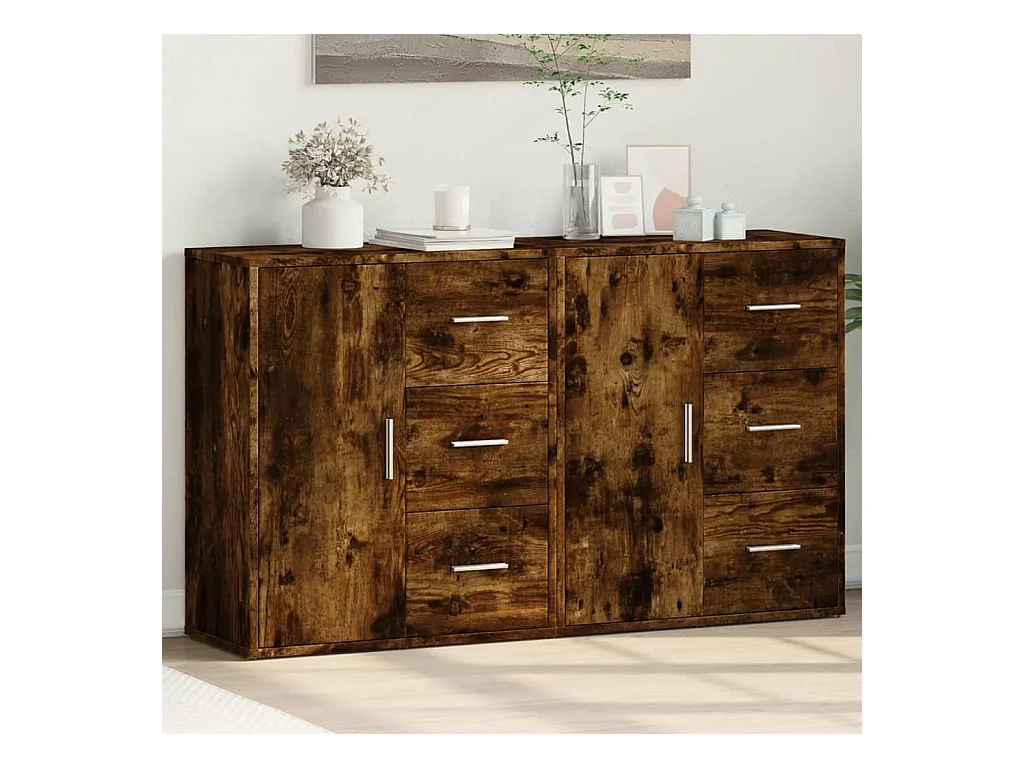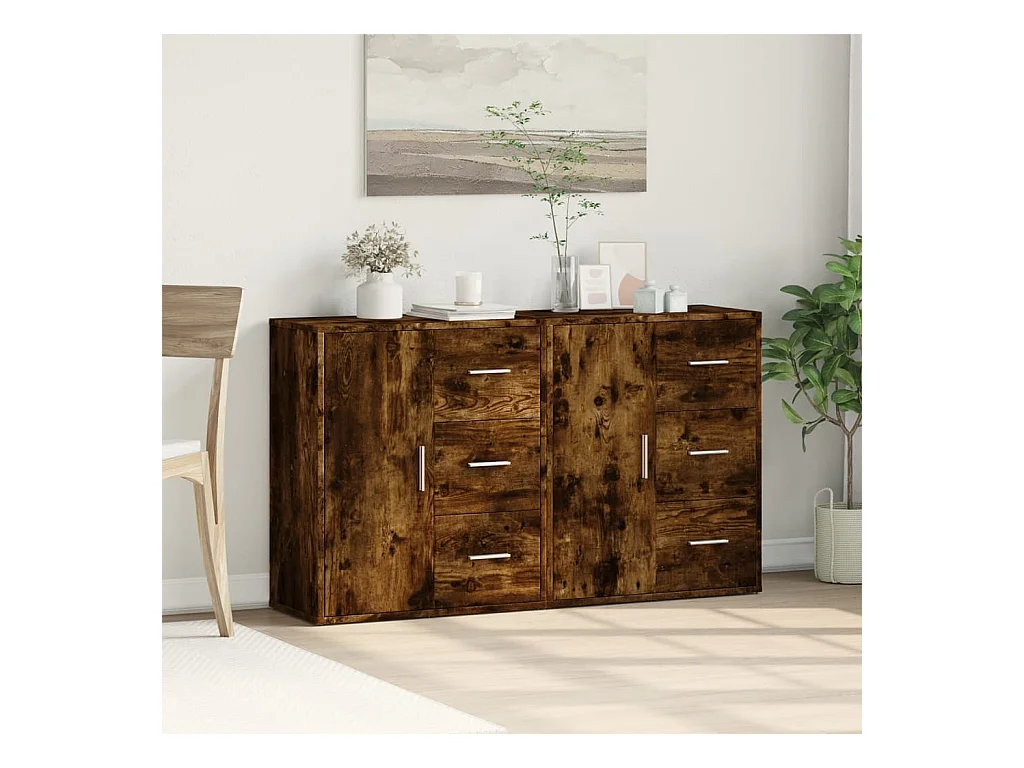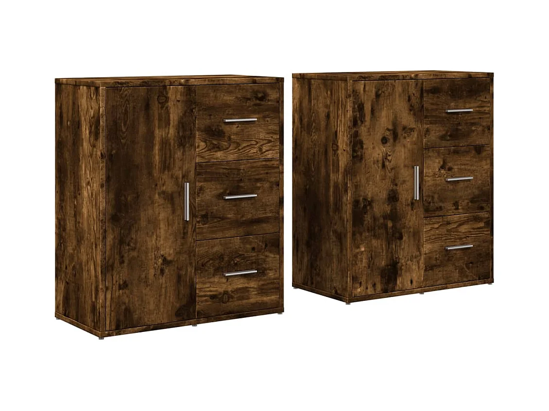 Buffets 2 pcs chêne fumé 60x31x70 cm bois d'ingénierie