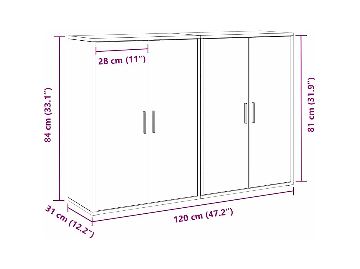 Buffets 2 pcs chêne sonoma 60x31x84 cm bois d'ingénierie