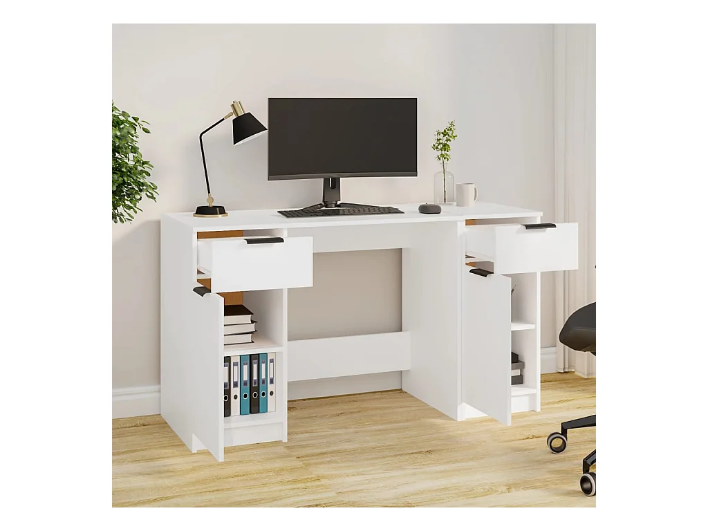 Bureau blanc 140x50x75 cm bois d'ingénierie