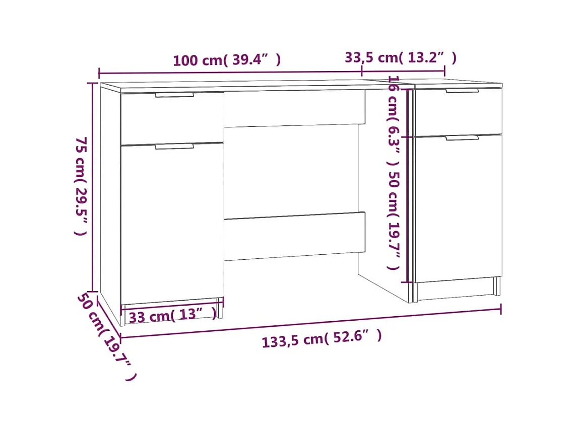 Bureau blanc 102x50x75 cm bois d'ingénierie