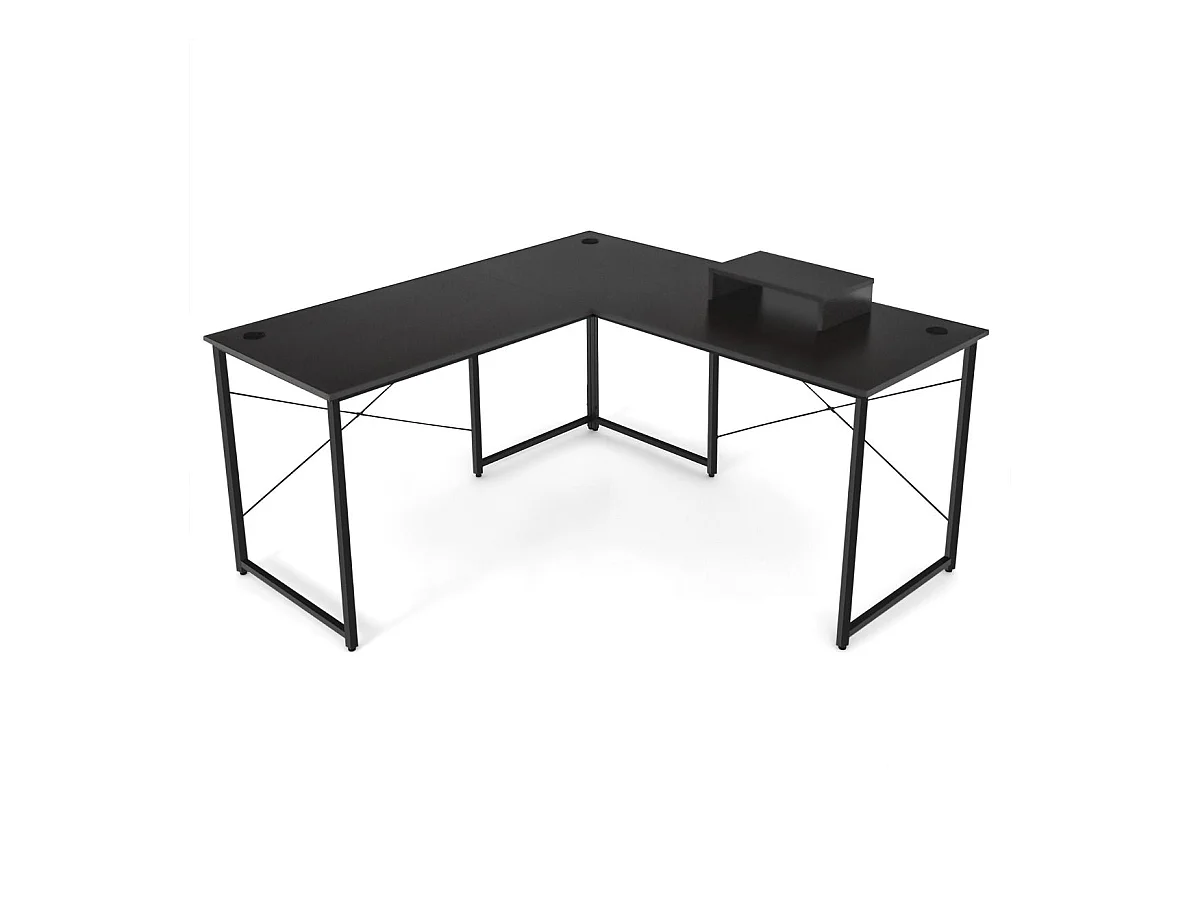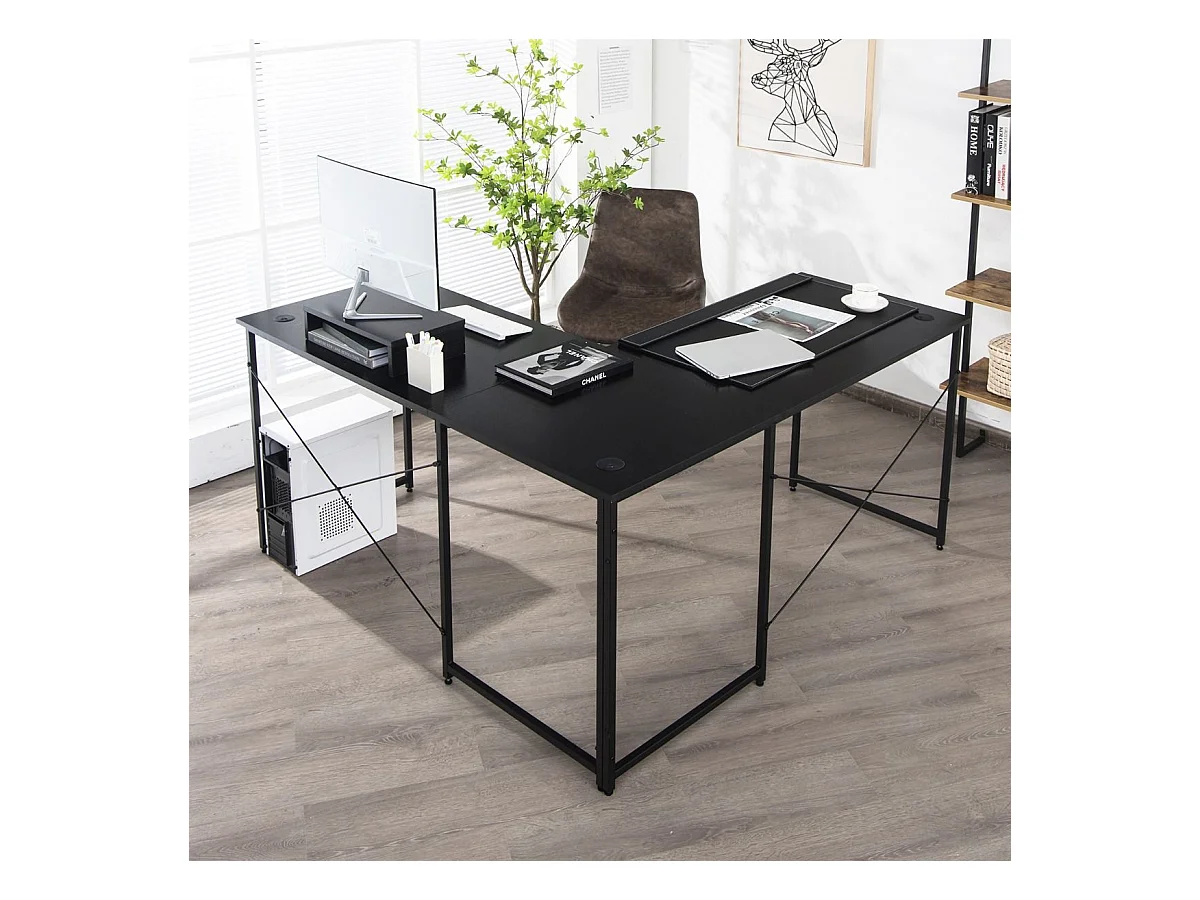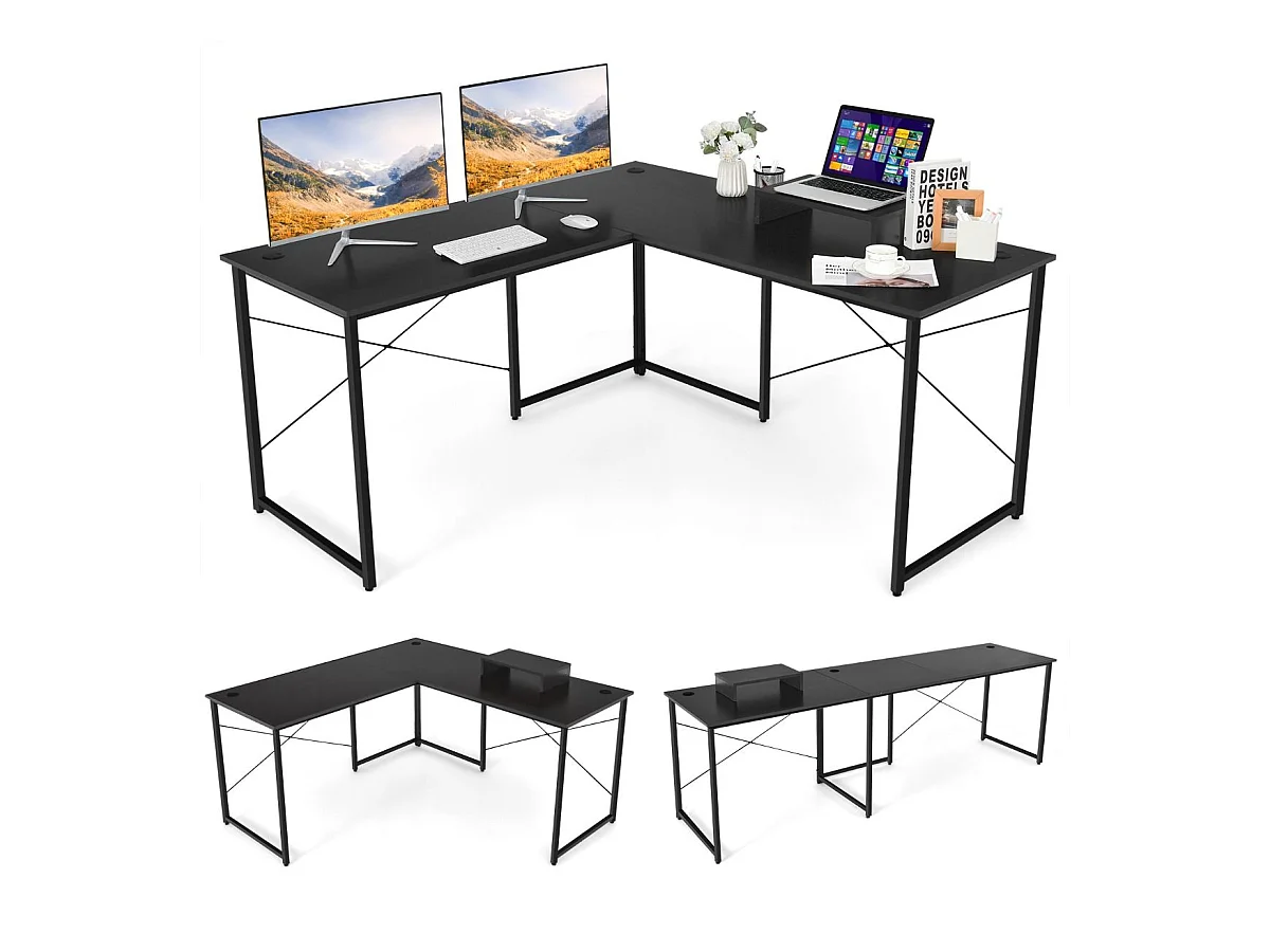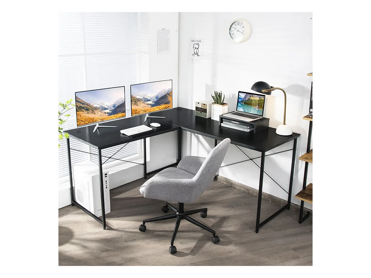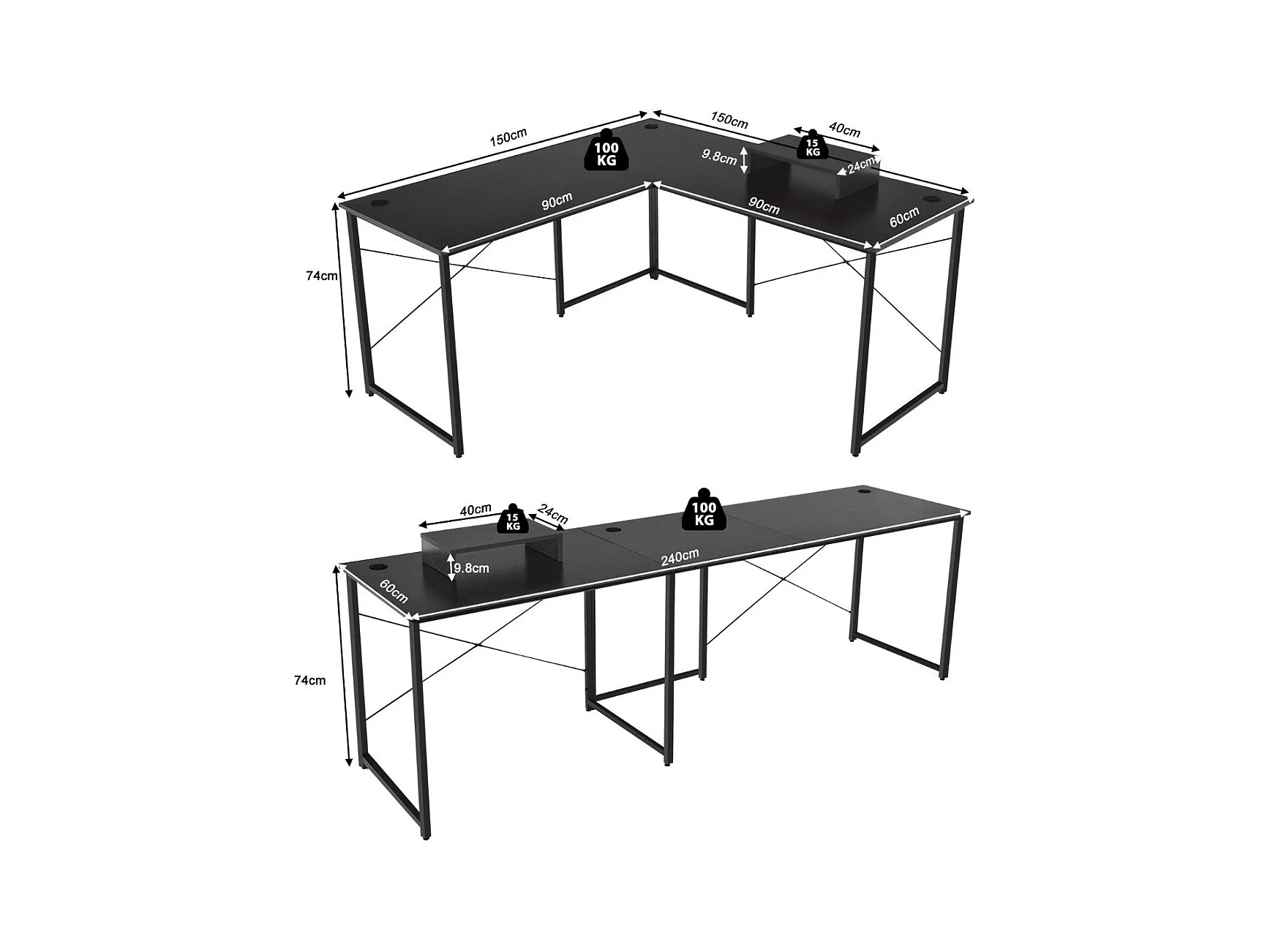 Bureau d'Angle 150 x 150 x 74 CM Ajustable à Bureau Droit Grand Table pour 2 Personnes Noir