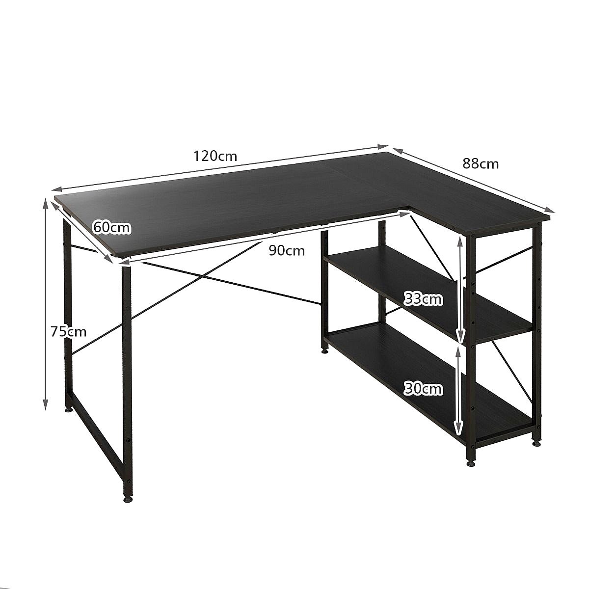 Bureau d'Angle en Forme L Réversible 120 x 88 x 74,5 cm Noir