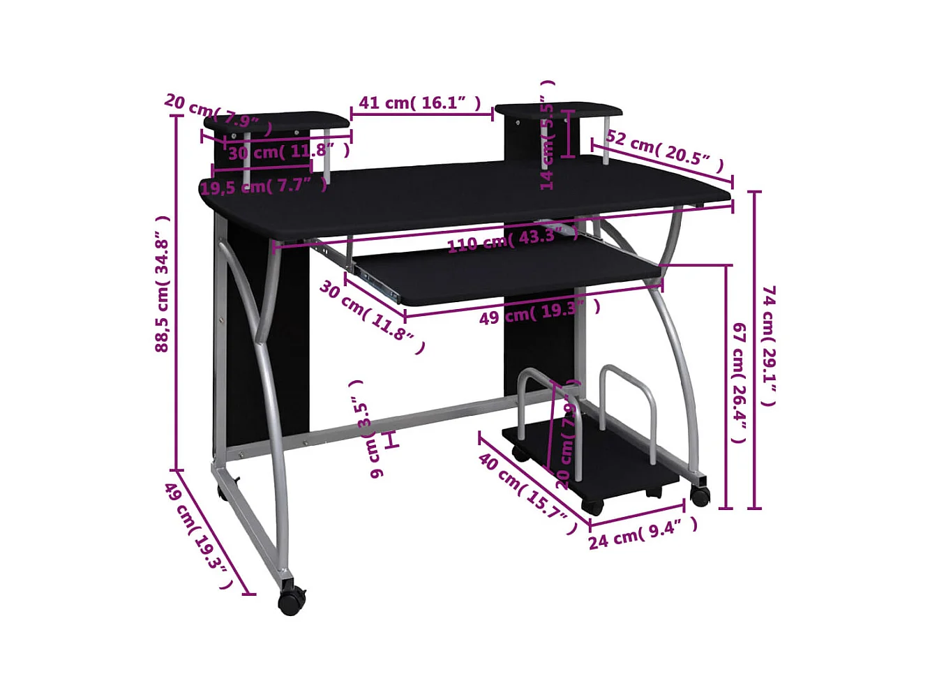 Bureau d'ordinateur Noir 110x52x88,5 cm Bois d’ingénierie