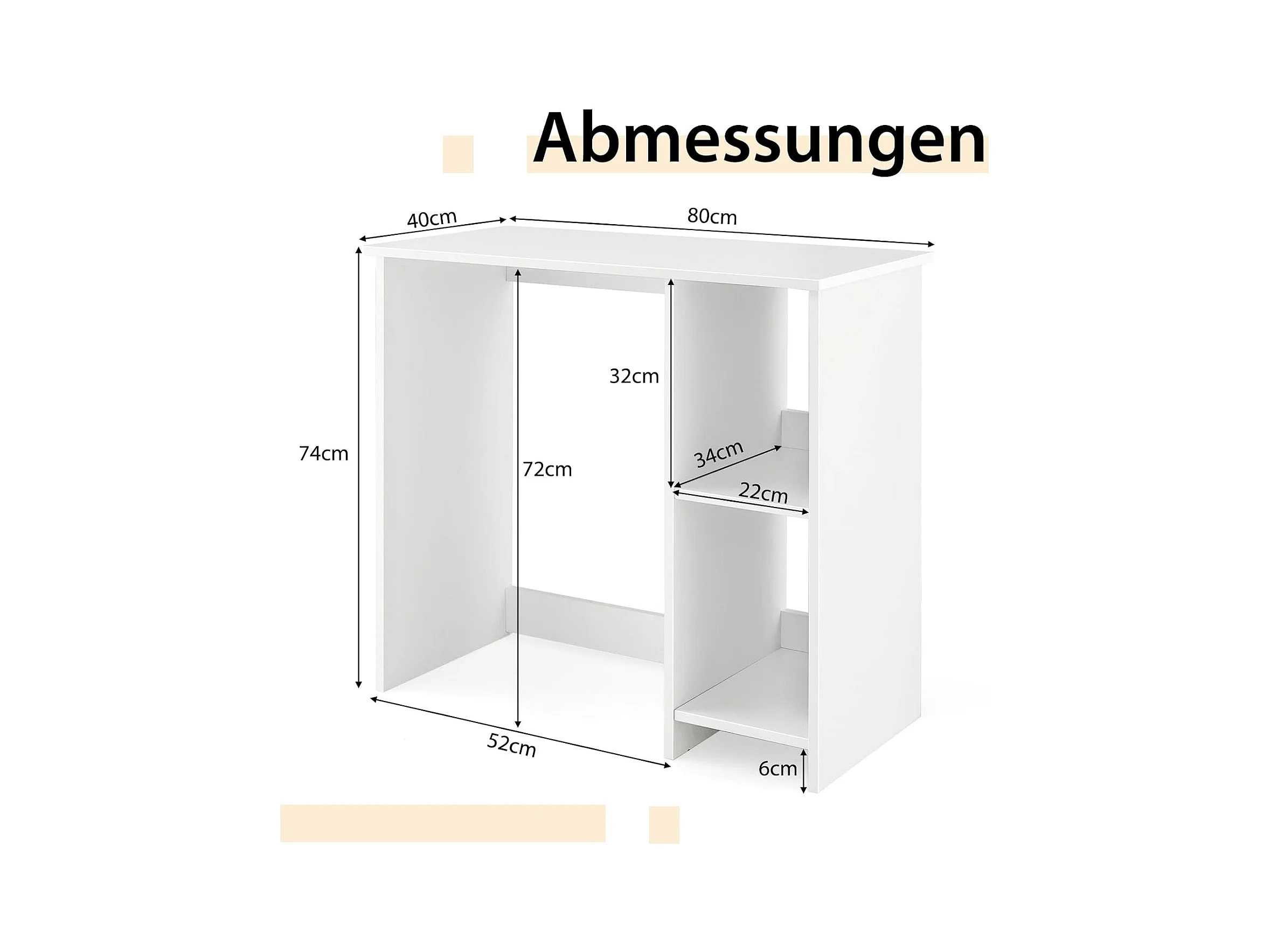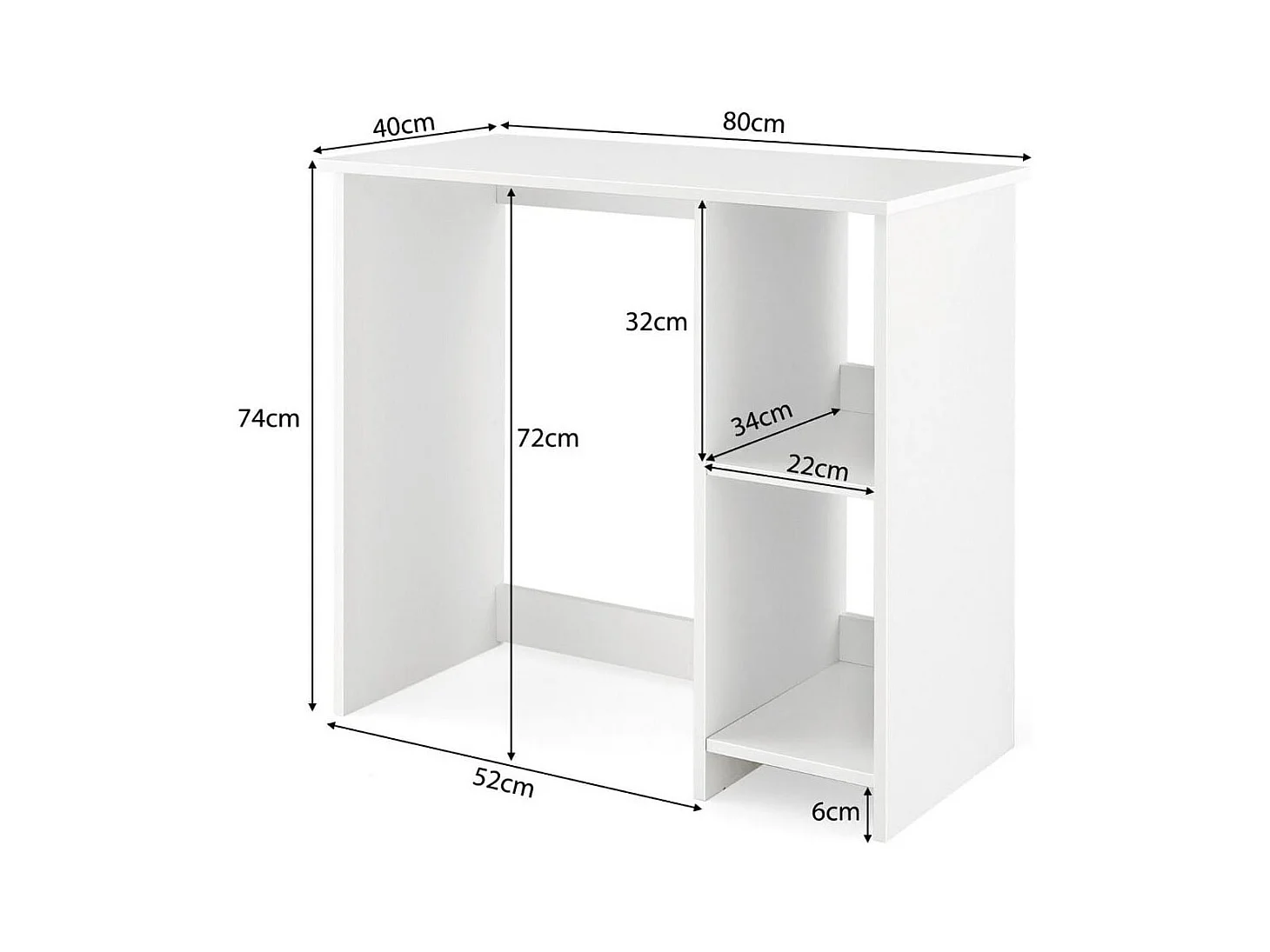 Bureau d'Ordinateur Table de Travail pour Petit Espace avec 2 Compartiments Bureau Informatique 40 x 80 x74 cm Blanc