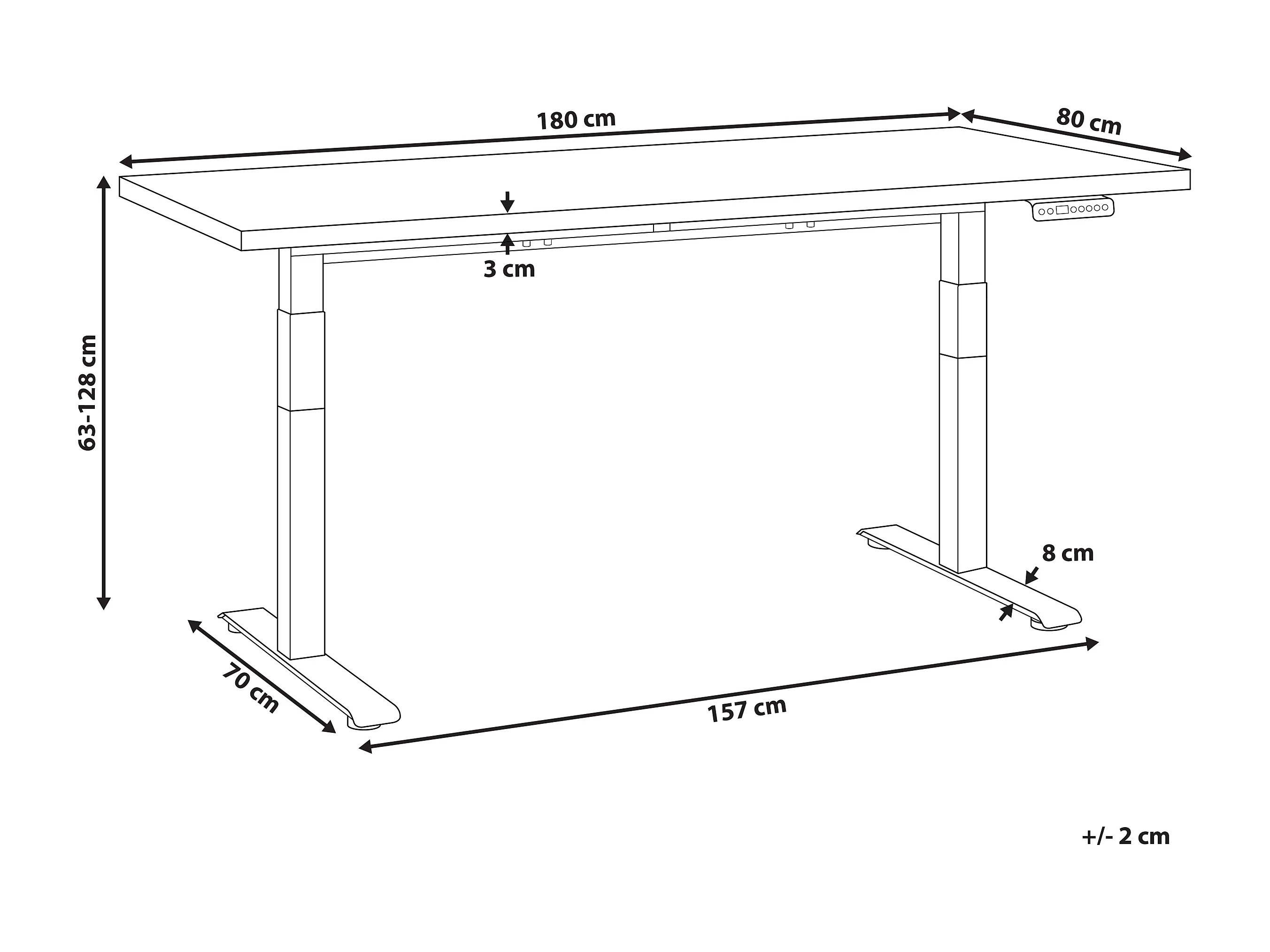 Bureau réglable en hauteur électriquement DESTINES Noir 180 cm 80 cm