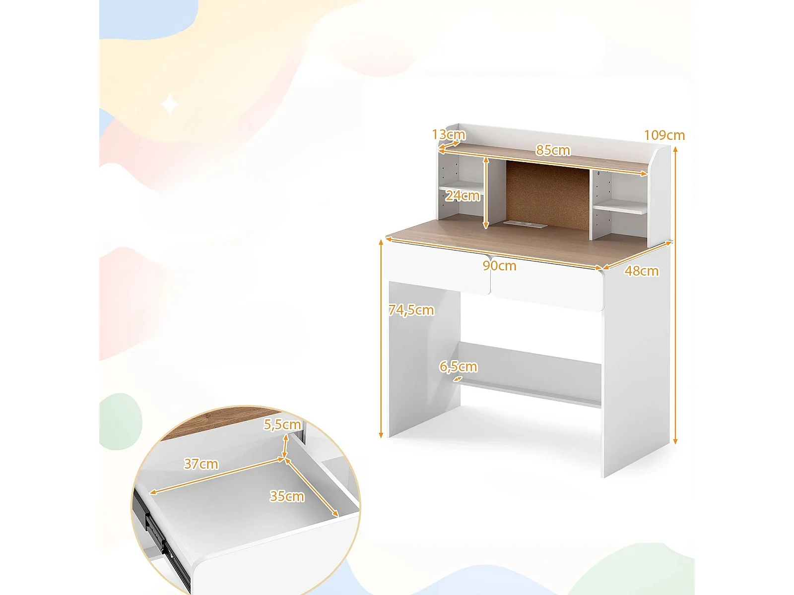 Bureau pour enfants bureau en bois stable avec tableau d'affichage en liège station de chargement bureau spacieux blanc