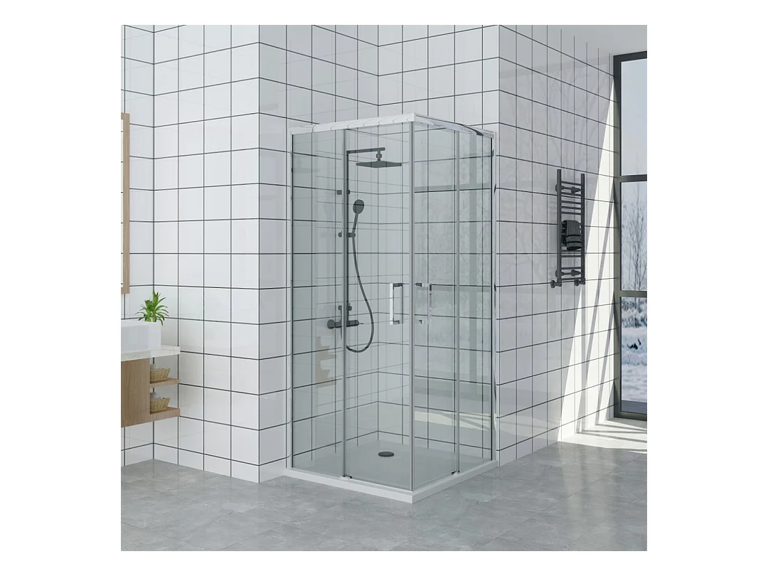 Cabine de Douche 90X110 cm Ouverture d'Angle Avec Entrée Facilitée Hauteur 200cm En Verre Trempé