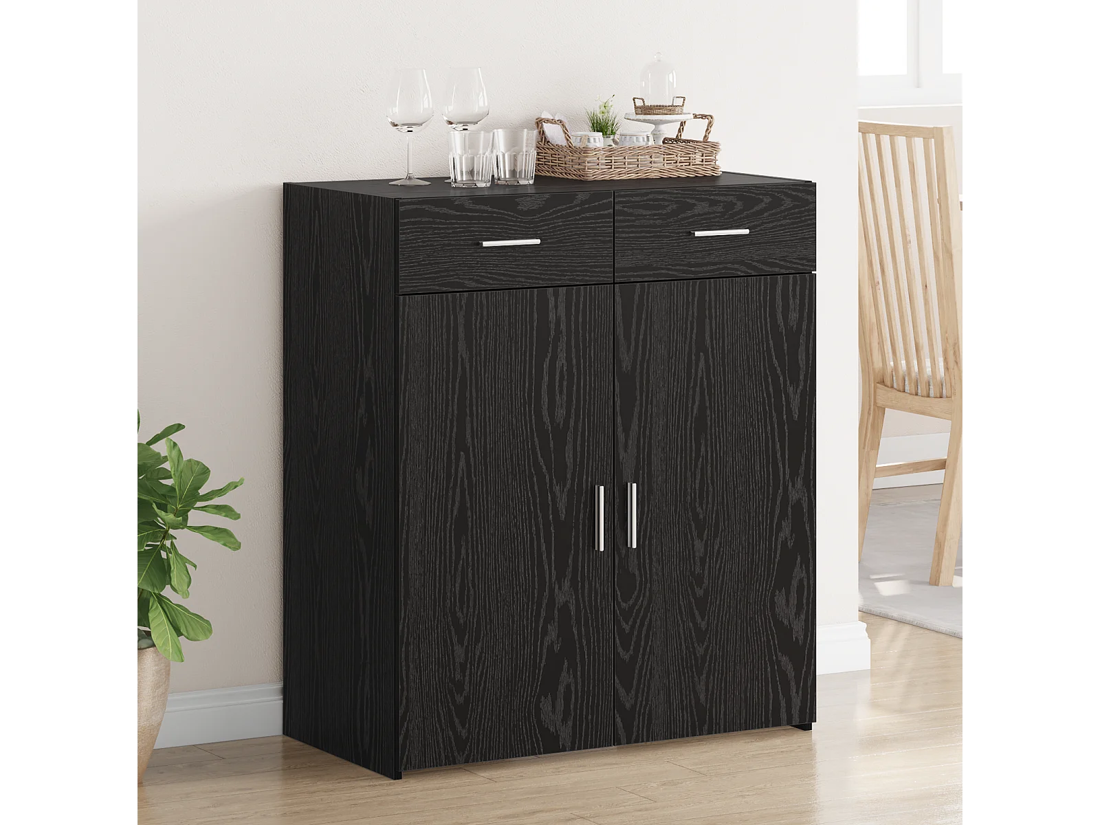Buffet noir 80x42,5x93 cm bois d'ingénierie