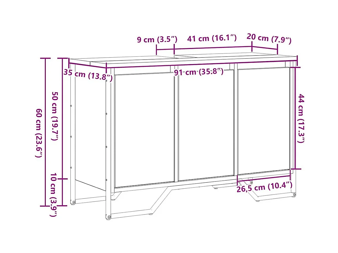 Cabinet Sous Évier Autre avec porte Bois Ancien 91 x 35 x 60 cm