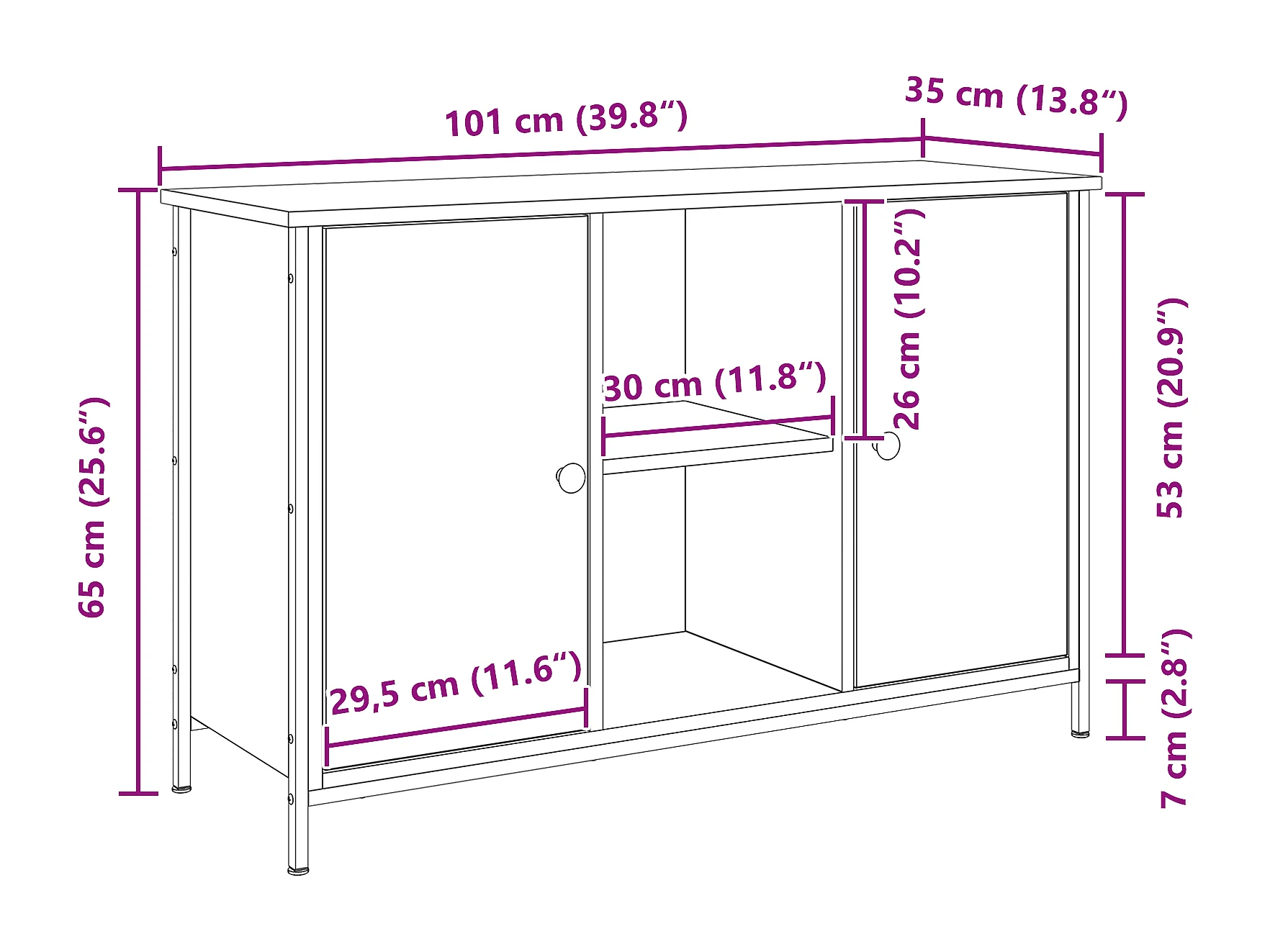 cabinet TV Chêne noir 101x35x65 cm Bois d'ingénierie et acier