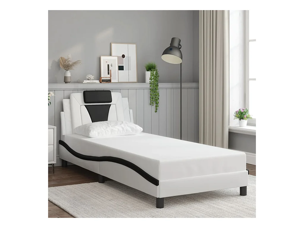 Cadre de lit avec LED sans matelas blanc et noir 90x200 cm