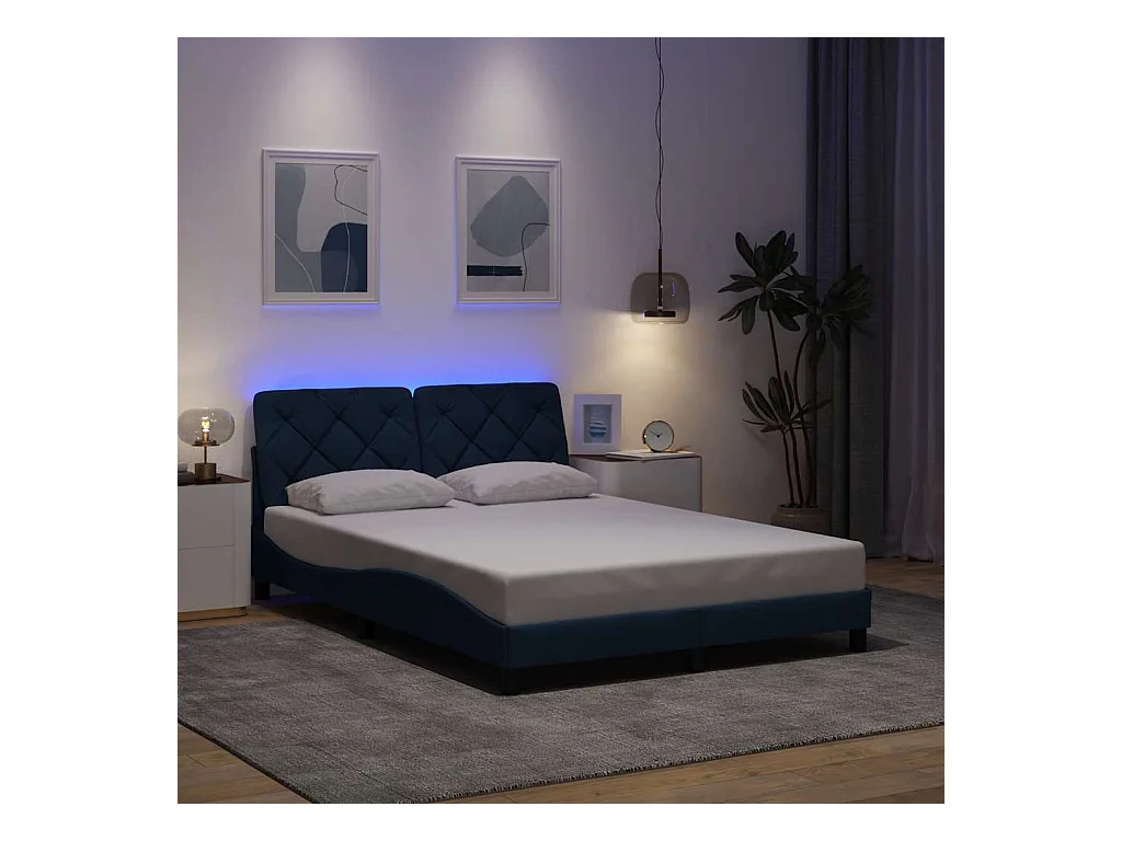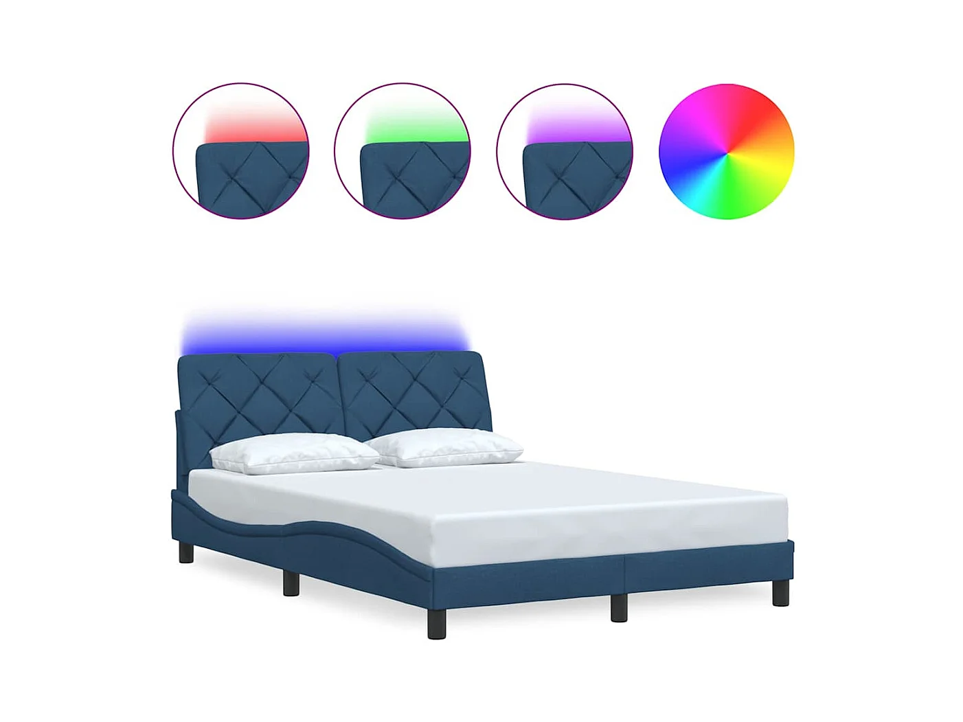 Cadre de lit avec LED sans matelas bleu 140x190 cm tissu