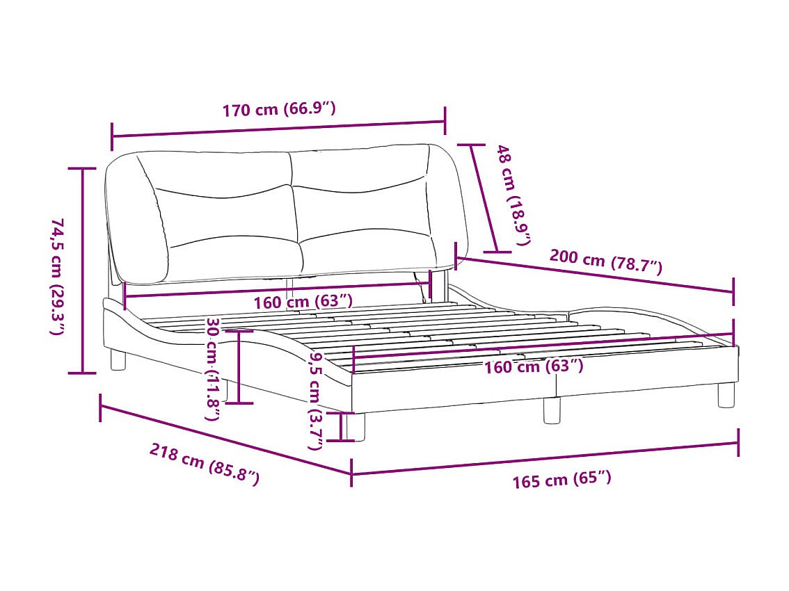 Cadre de lit sans matelas bleu 160x200 cm tissu