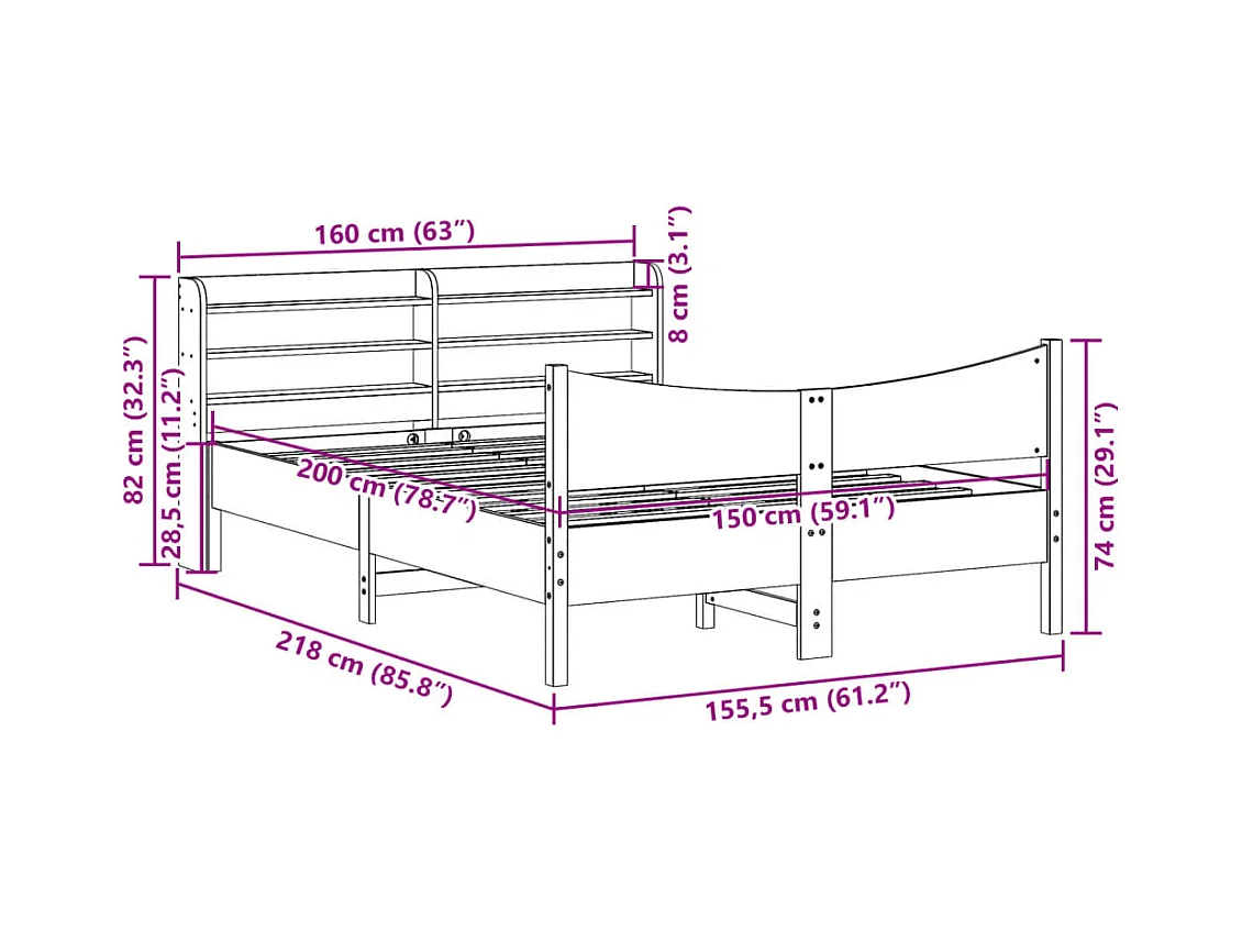 Cadre de lit sans matelas blanc 150x200 cm bois de pin massif