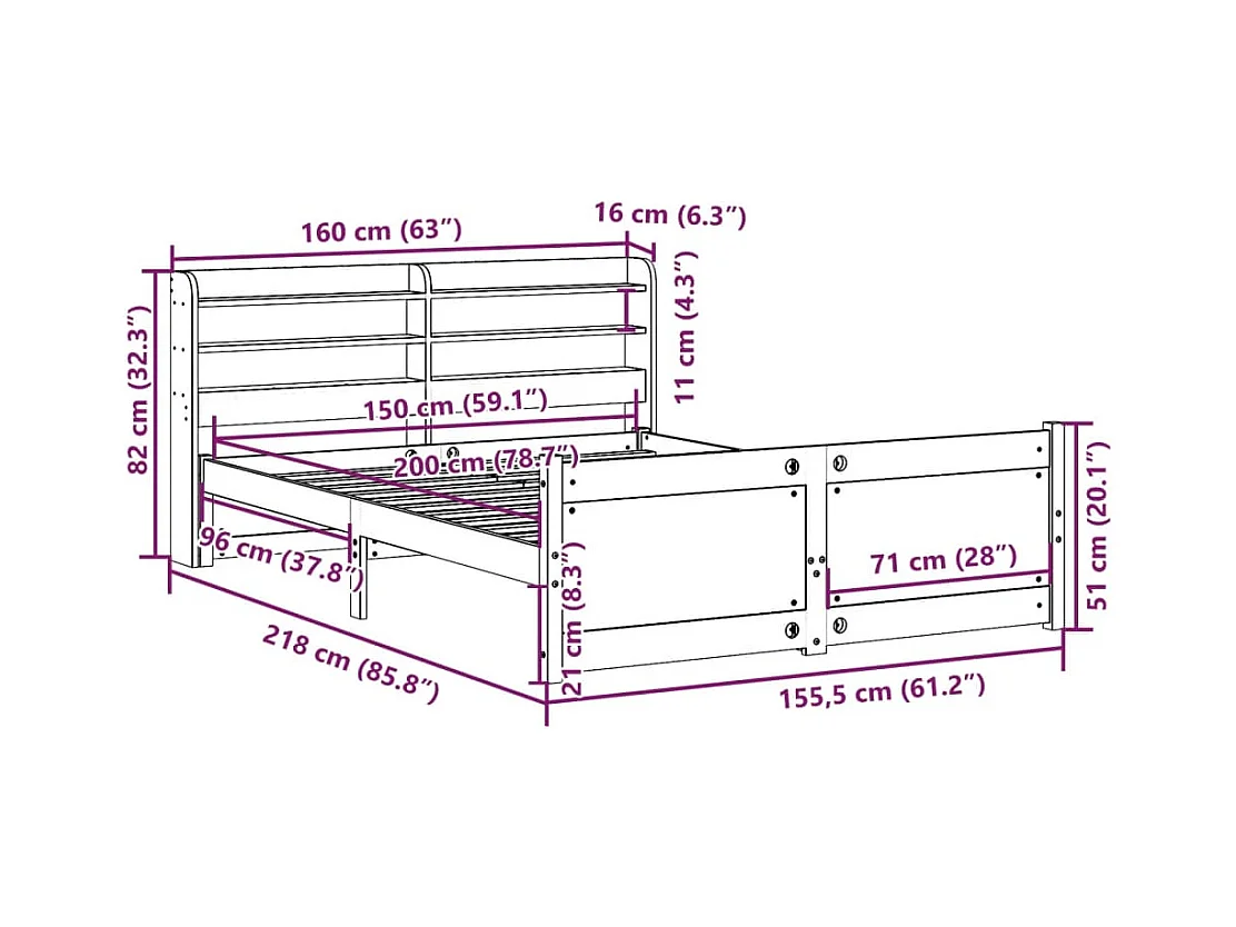 Cadre de lit sans matelas blanc 150x200 cm bois de pin massif