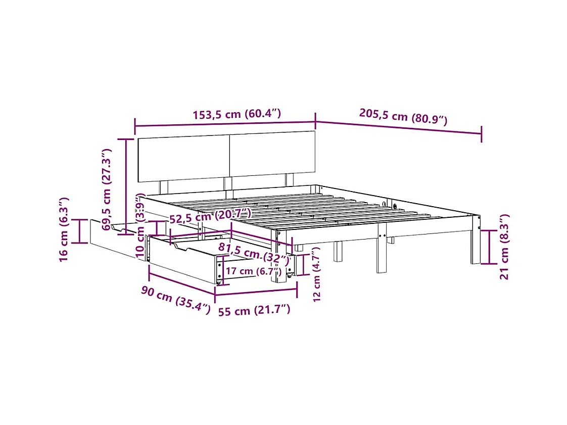 Cadre de lit avec tiroirs sans matelas blanc 150x200 cm