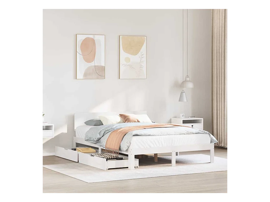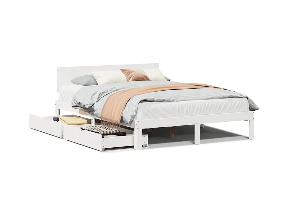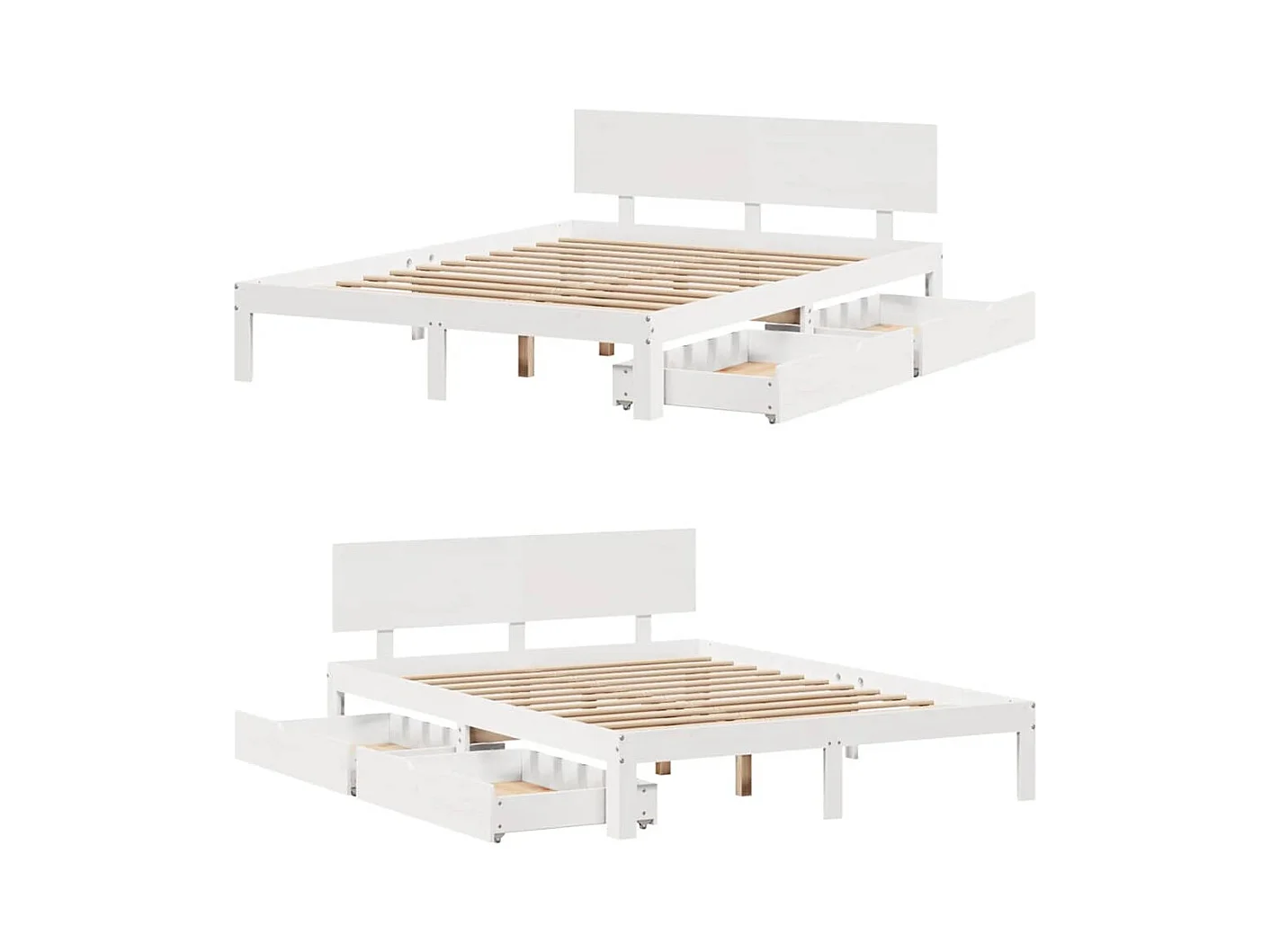 Cadre de lit avec tiroirs sans matelas blanc 160x200 cm