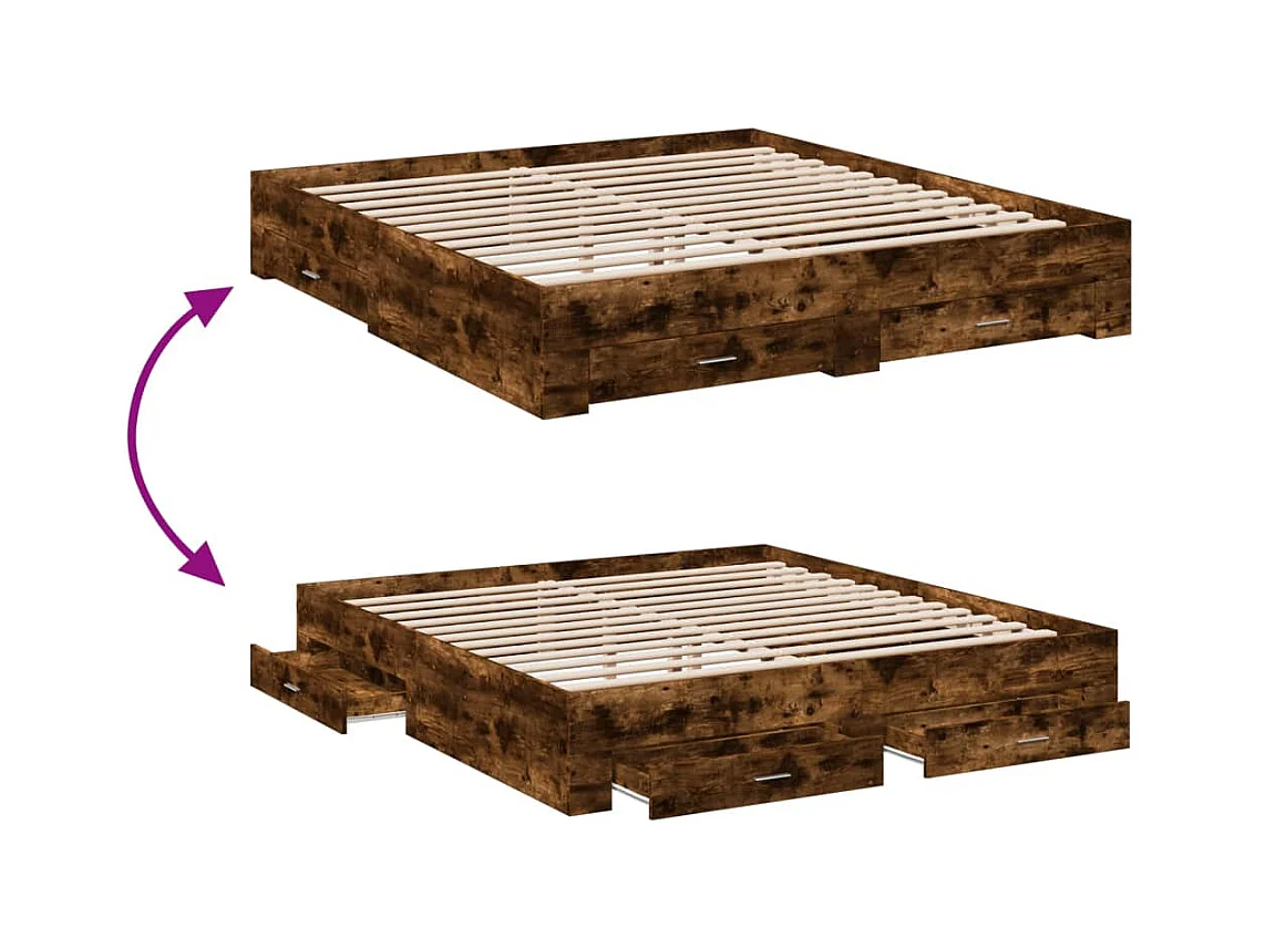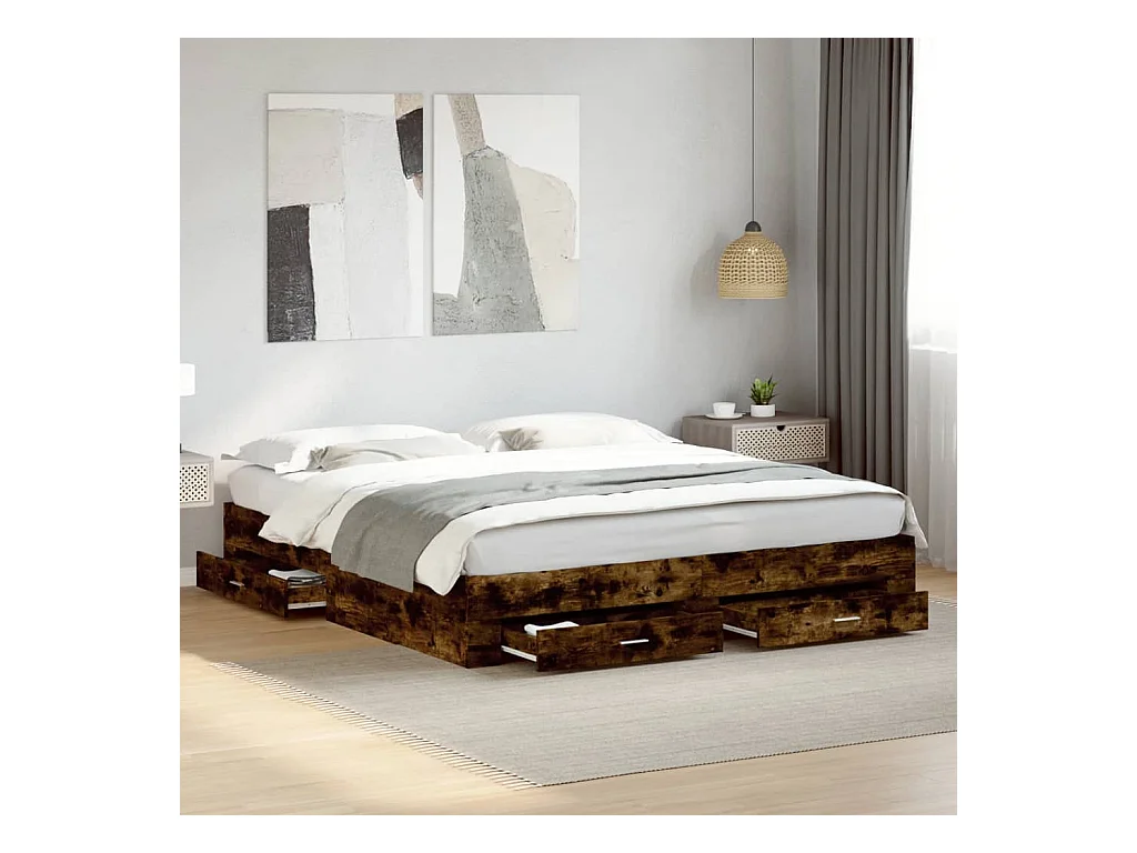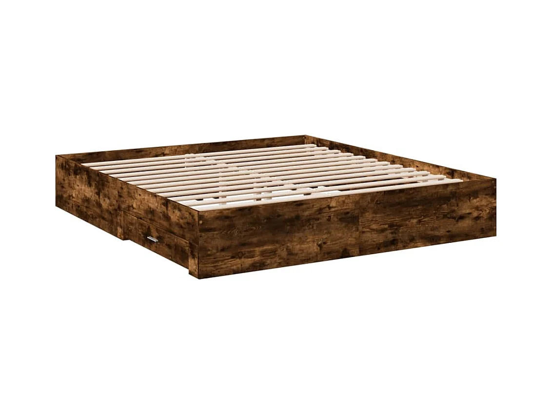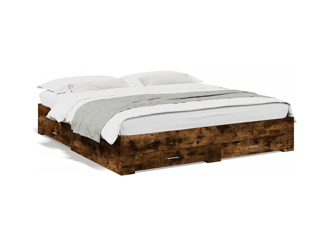 Cadre de lit avec tiroirs sans matelas chêne fumé 180x200 cm