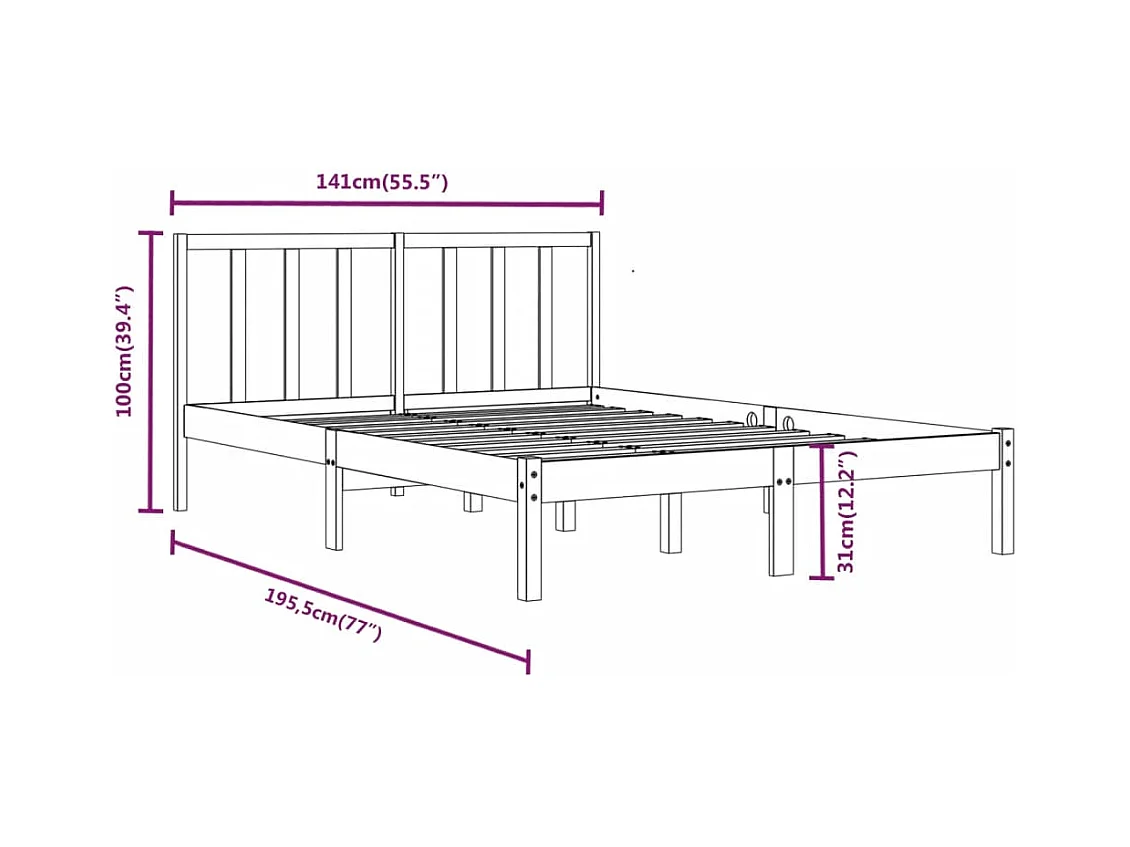 Cadre de lit sans matelas bois massif de pin 135x190 cm