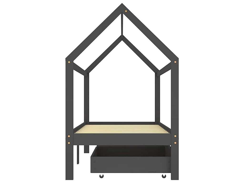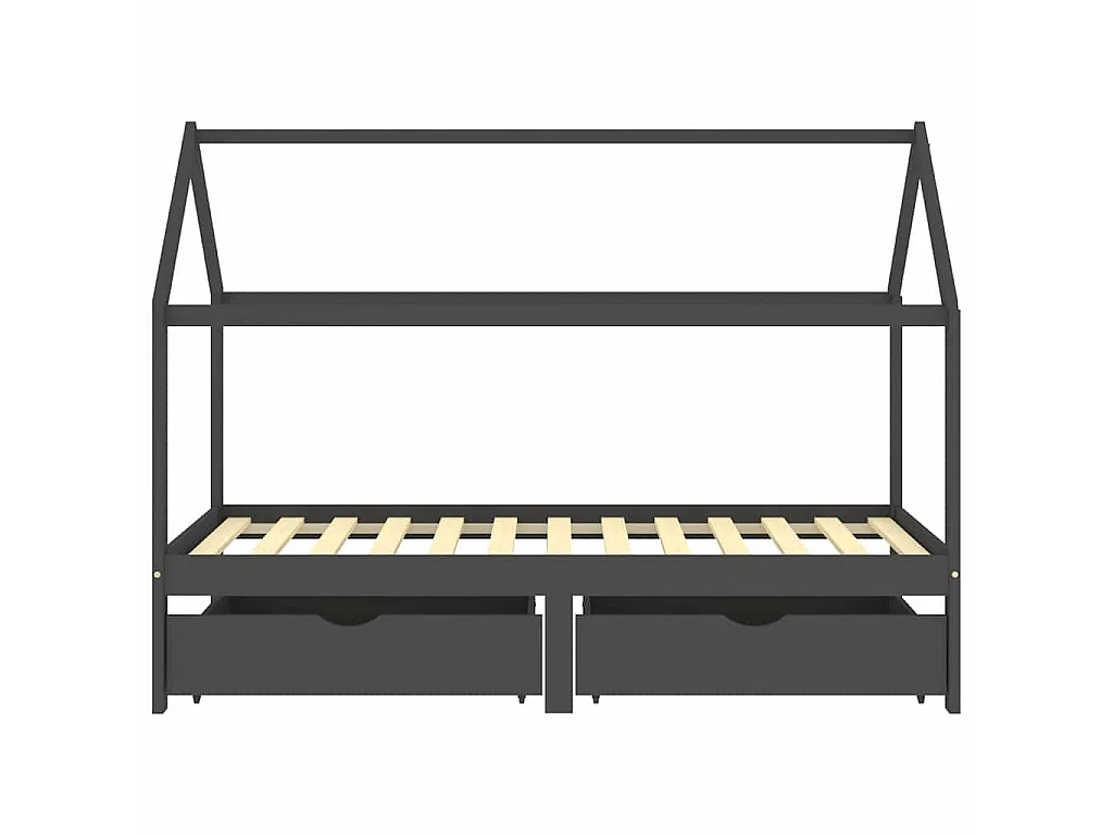 Cadre de lit d'enfant avec tiroirs Gris foncé Pin 90x200 cm