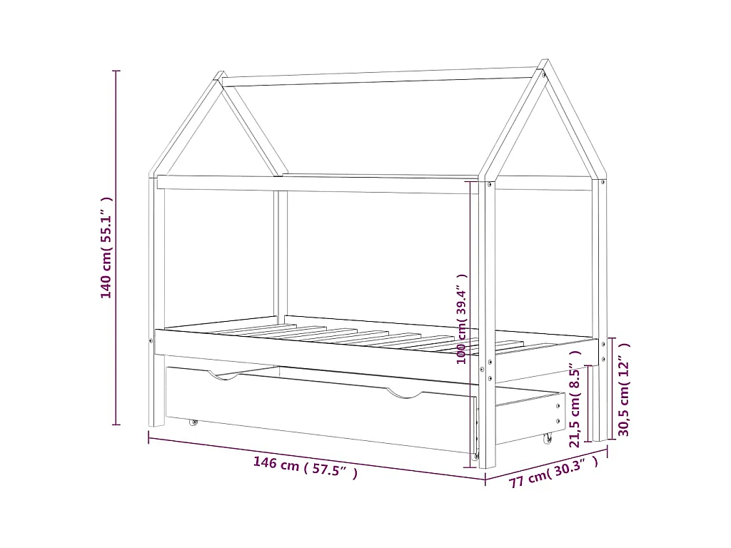 Cadre de lit d'enfant avec un tiroir Blanc Pin massif 70x140 cm