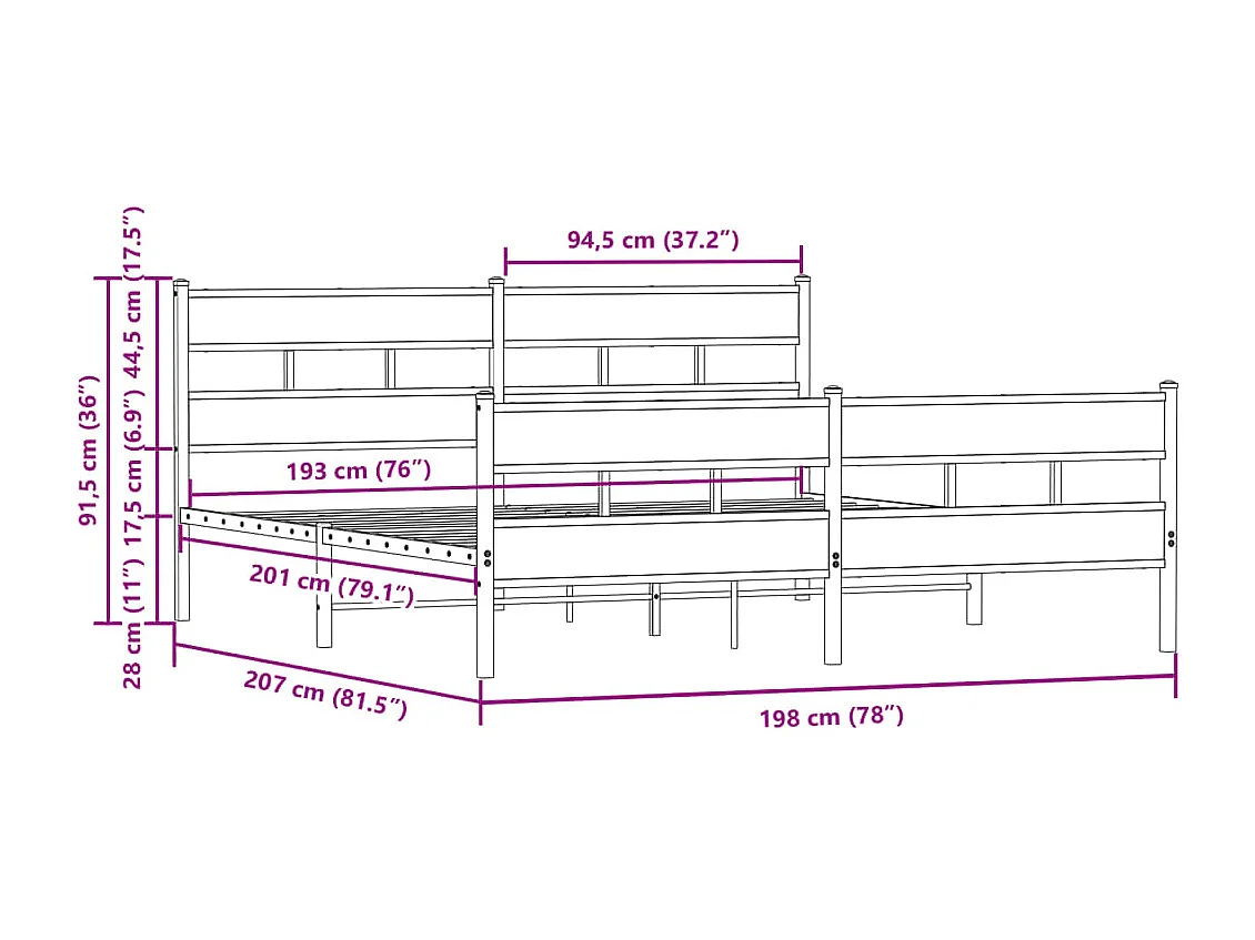 Cadre de lit en métal sans matelas chêne fumé 193x203 cm