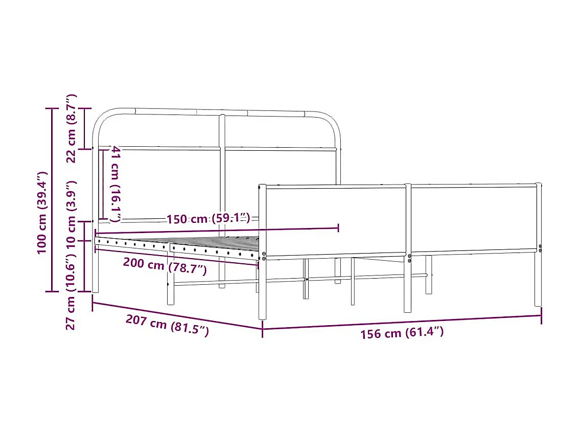 Cadre de lit en métal sans matelas chêne fumé 150x200 cm