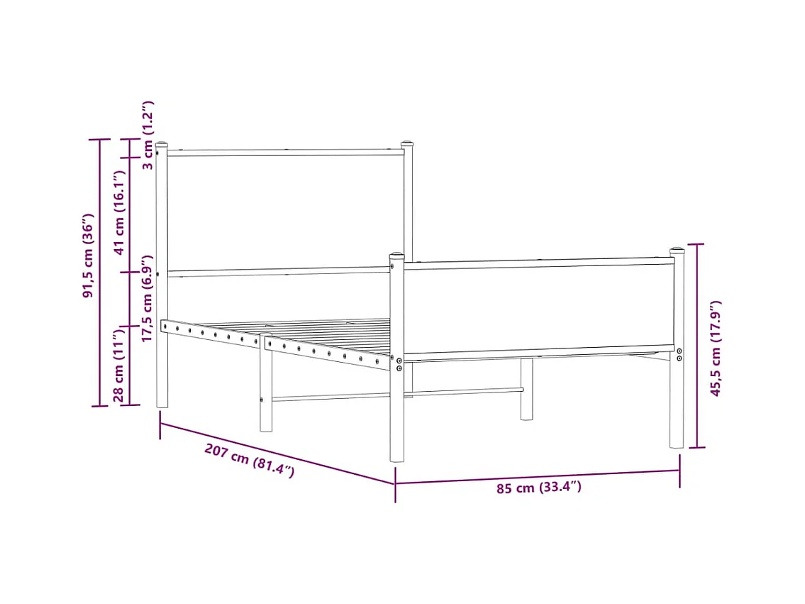 Cadre de lit en métal sans matelas chêne sonoma 80x200 cm